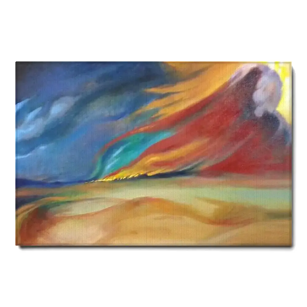 This is a more casual and often more artistic style of canvas presentation. A hanging canvas typically consists of a canvas fabric sheet with two wooden bars attached at the top and bottom. The top bar includes a hanging mechanism, usually a string or a cord, for easy display. This style allows the canvas to hang freely against the wall, giving it a slightly informal, bohemian feel. The canvas in this case can be easily rolled for storage or transport.