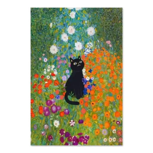 Gustav List Cat Print Cottage Garden With Black Cat Gustav List Cat Poster Cat Poster Funny Cat Art Cat Print Wall Art