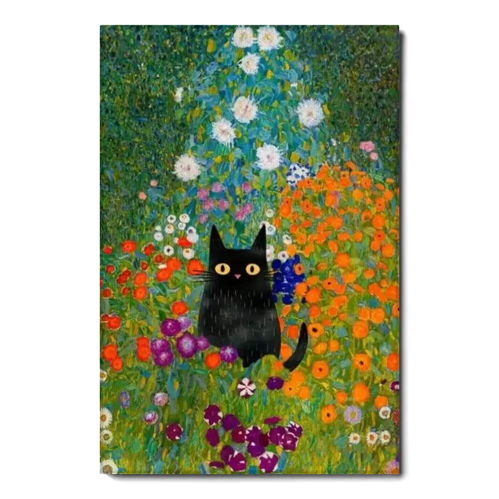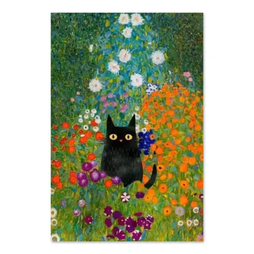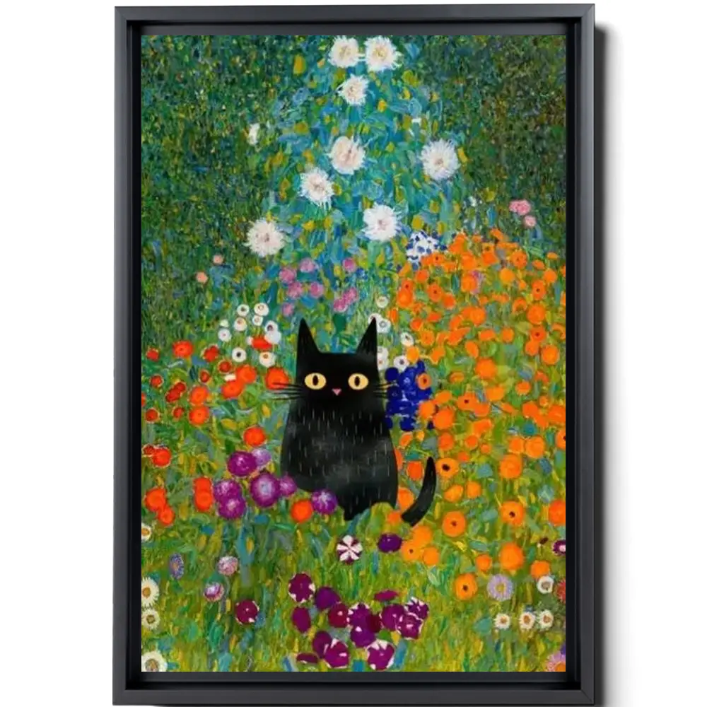 Gustav List Flowers Cat Poster List Garden Cat Print Black Cat Art Floral Print Funny Gift Funny Cat Print Home Decor Poster