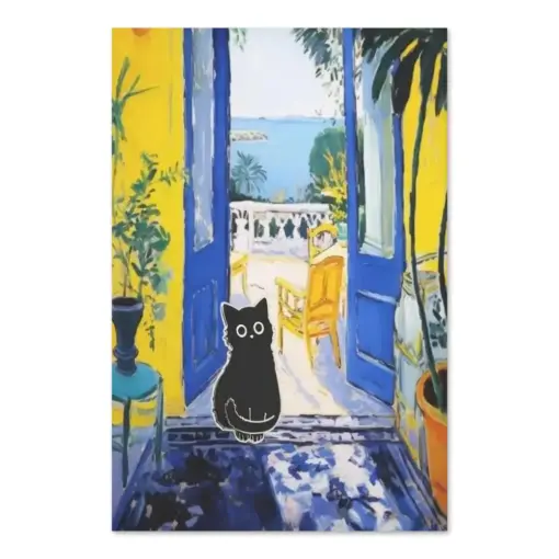 Henri Matinee Cat Print Matinee Open Window Cat Poster Black Cat Art Print , Floral Print Wall Art Home Decor Poster , Cat Print Wall Art