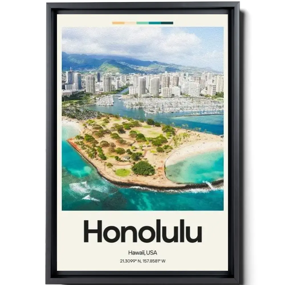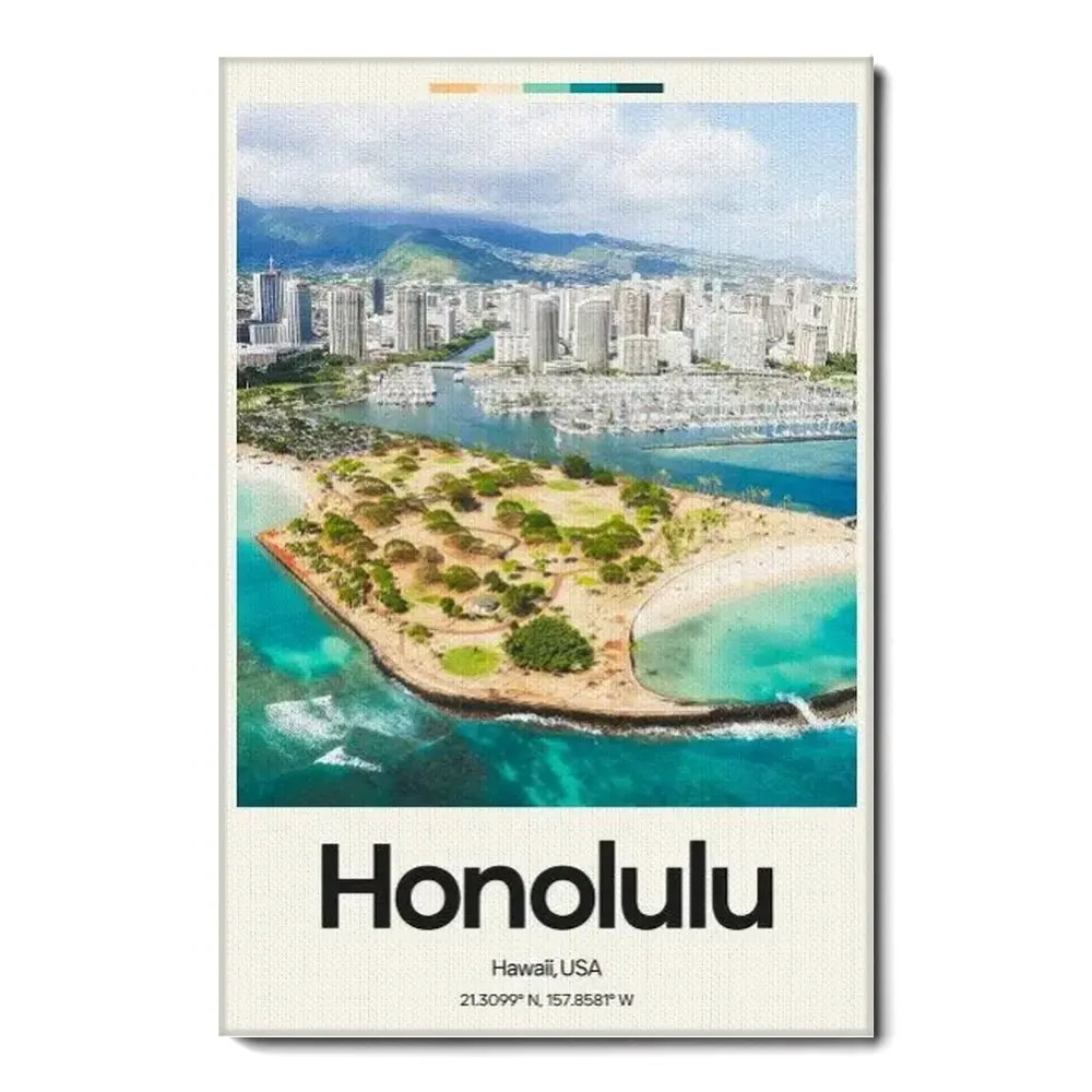 Honolulu Beach Poster – Oil Painting Technique | United States Wall Art | & Printed Travel Prints | Animalistic Home Decor