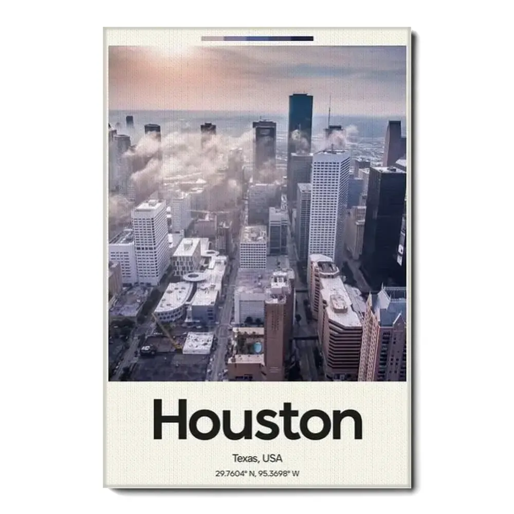 Houston Poster – Oil Painting Technique | United States Wall Art | & Printed Travel Prints | Animalistic Home Decor