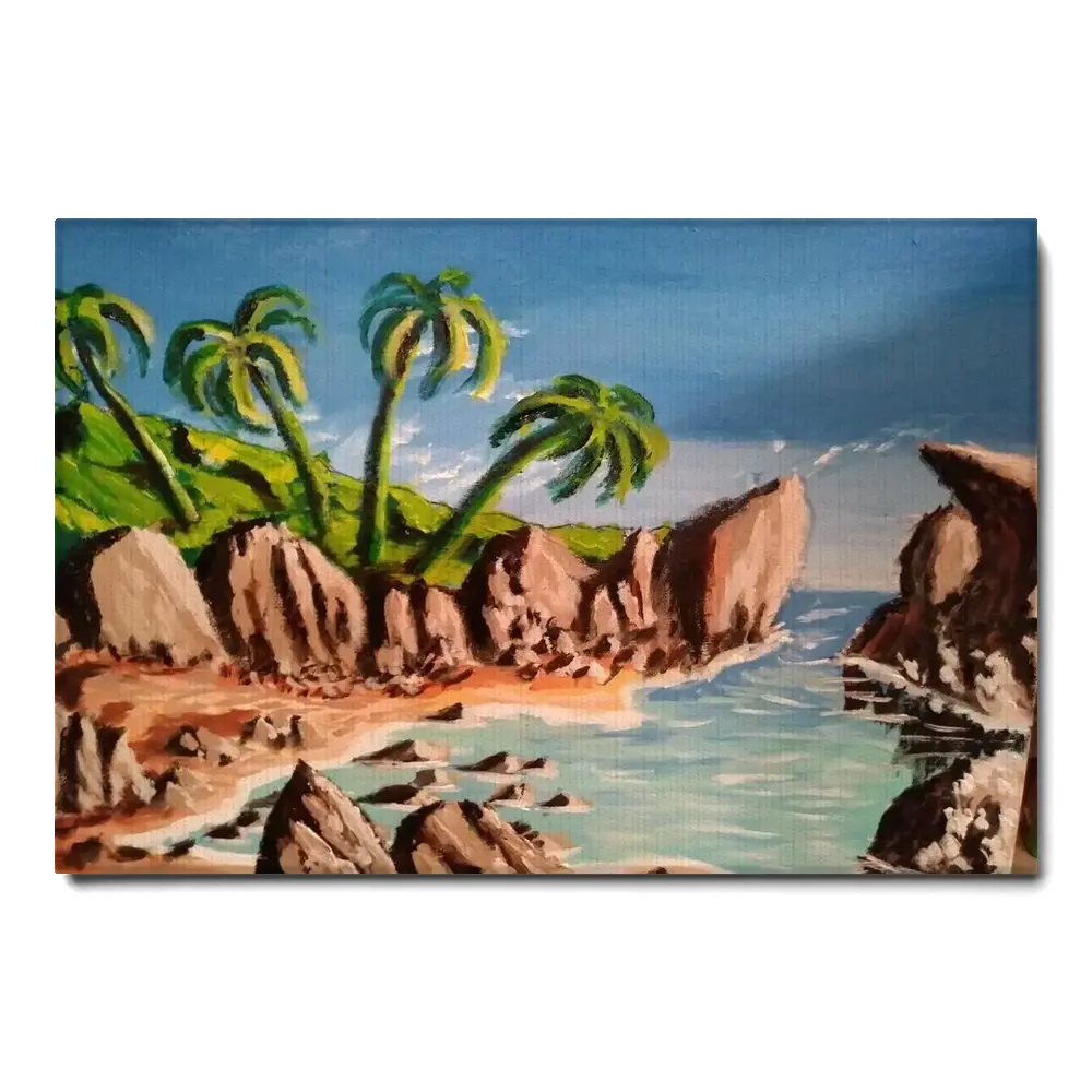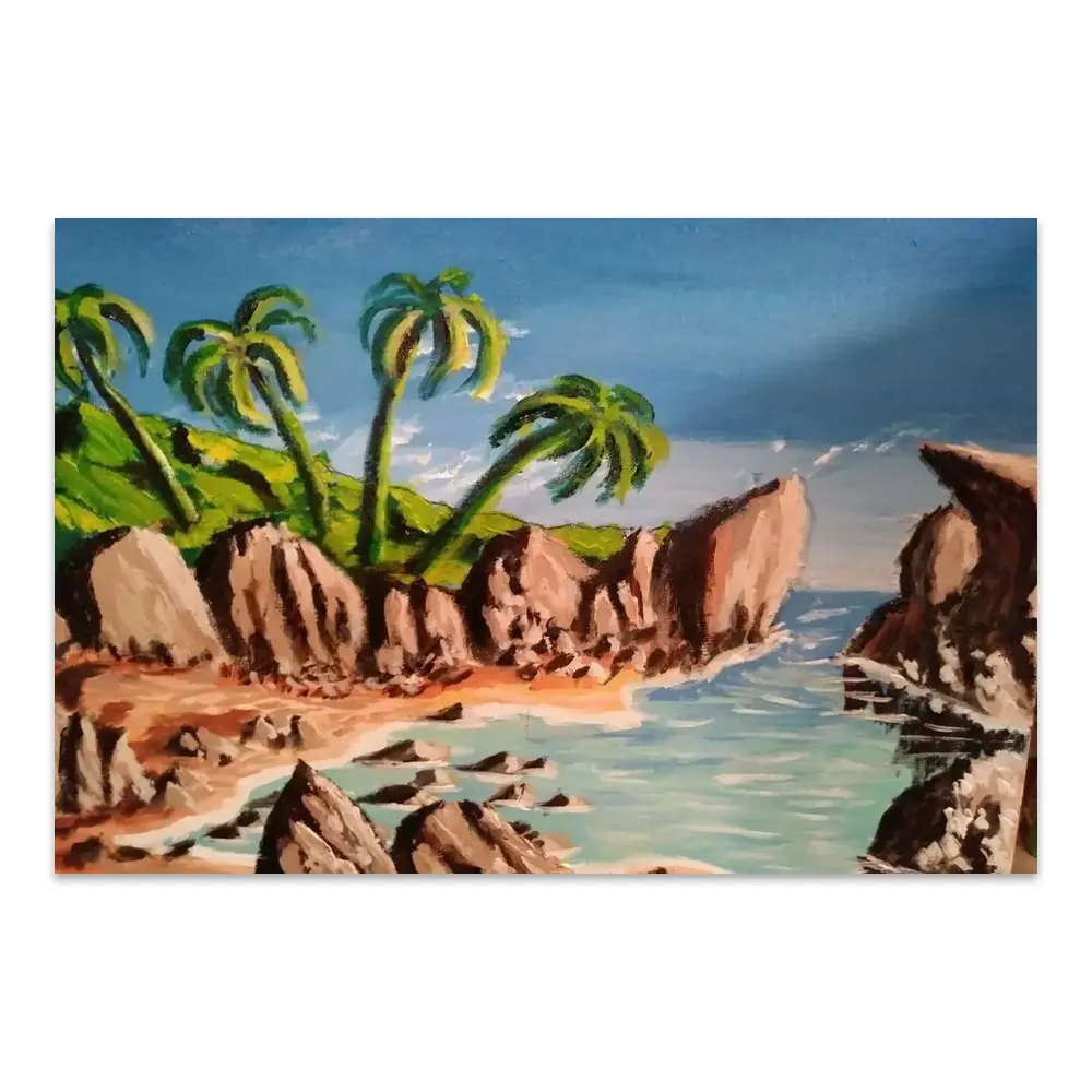 This is a more casual and often more artistic style of canvas presentation. A hanging canvas typically consists of a canvas fabric sheet with two wooden bars attached at the top and bottom. The top bar includes a hanging mechanism, usually a string or a cord, for easy display. This style allows the canvas to hang freely against the wall, giving it a slightly informal, bohemian feel. The canvas in this case can be easily rolled for storage or transport.
