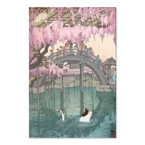 Japanese Cat Poster Japanese Cat Art Print Wall Art Decor Exhibition Poster Print Bridge By Hiroshi Yoshida Floral Print Gift