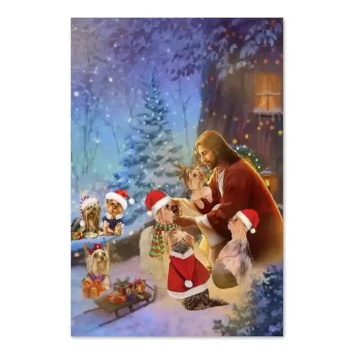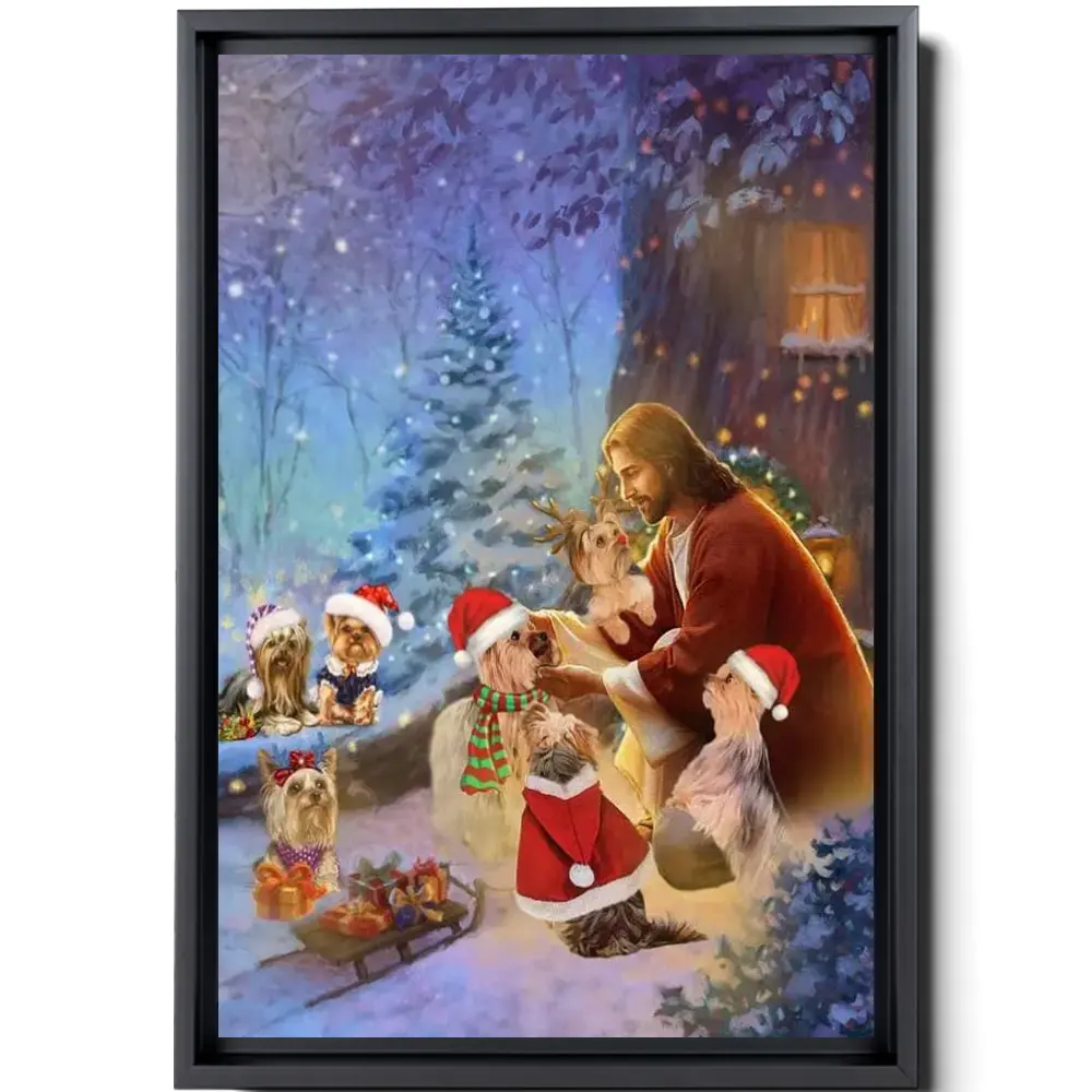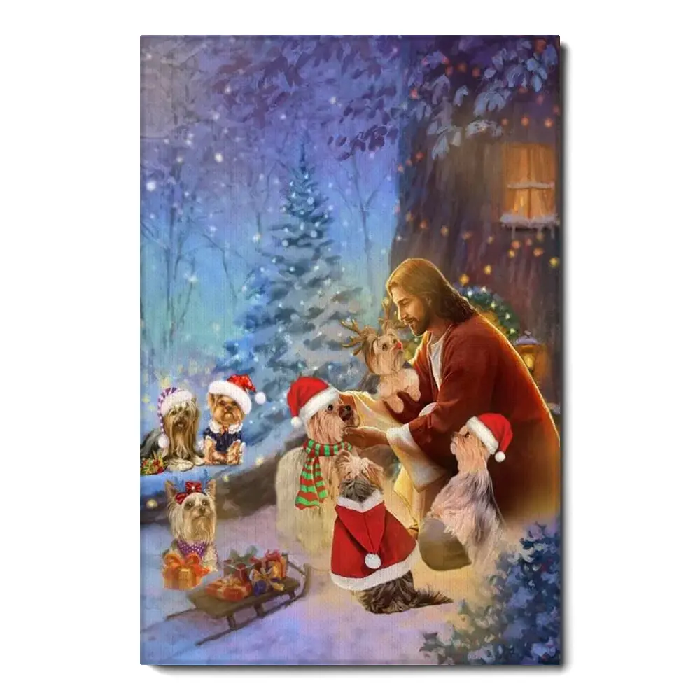 Jesus And Yorkie Christmas Poster Or Canvas Yorkshire Terrier Christmas Wall Art Jesus Christ And Yorkshire Terrier Wall Decor