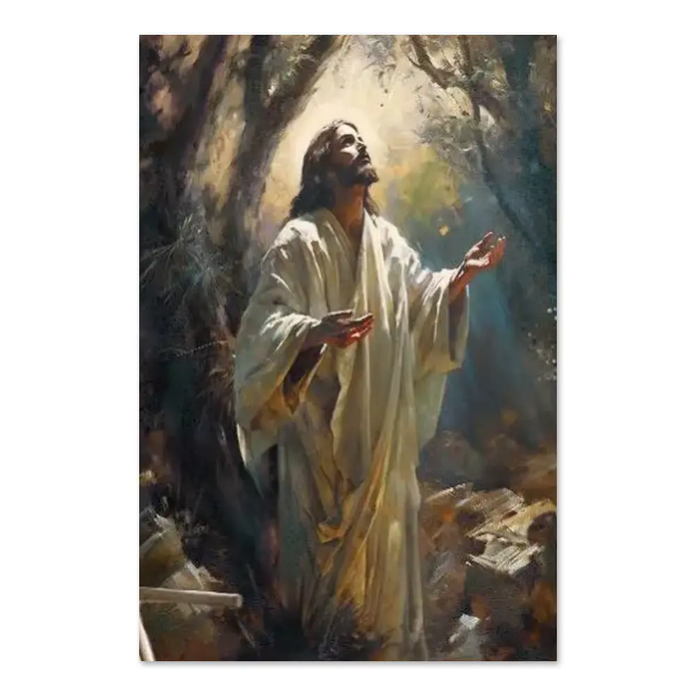 Jesus Art Jesus Prays In The Garden Of Christ Portrait Smiling Christ Painting Christian Wall Art