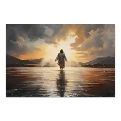 Jesus Christ Walking On Water Original Oil Painting Christian Print Art Religious Wall Art Matte Print Religious Wall Decor Holy Clouds