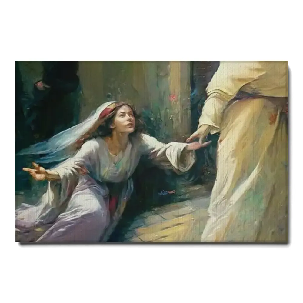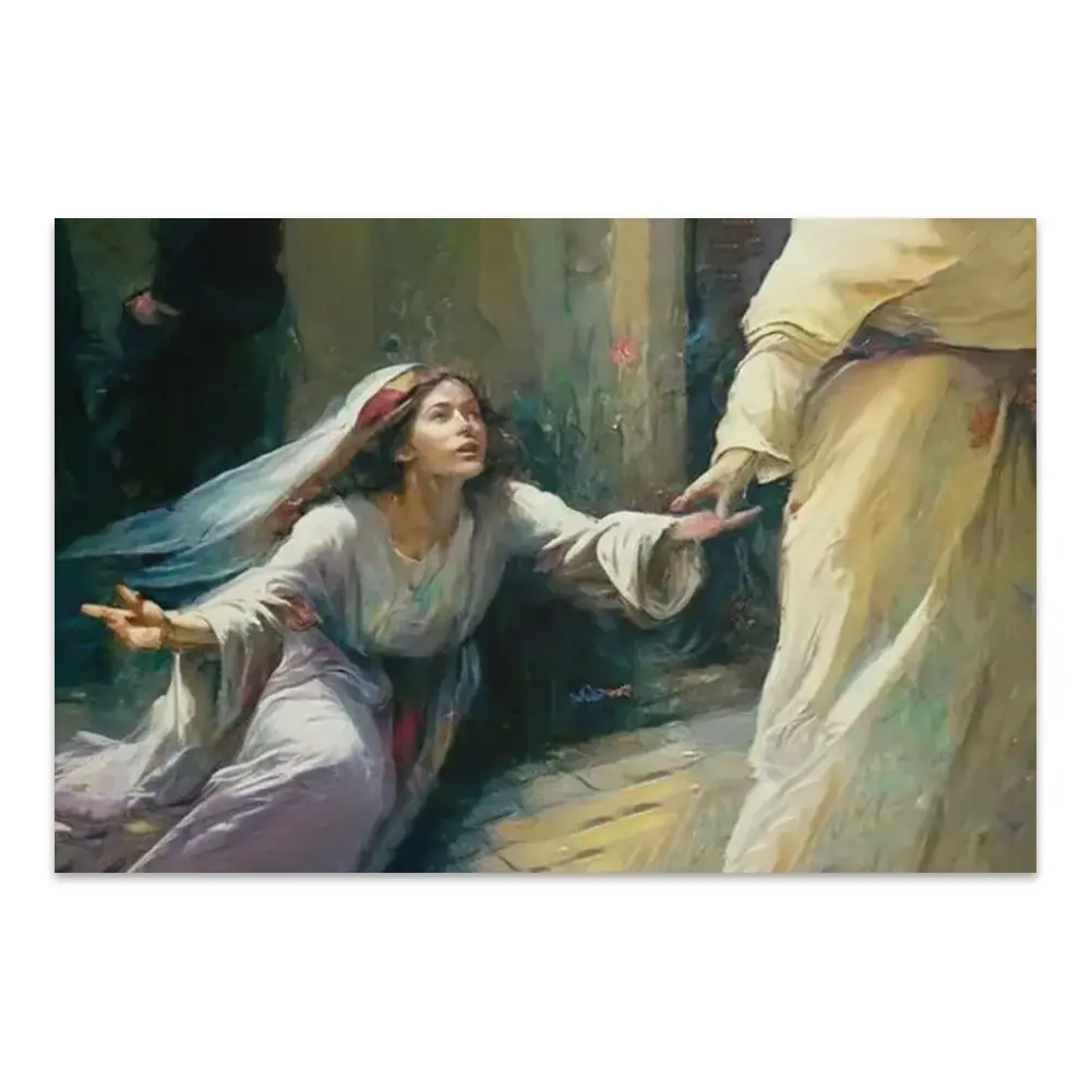 Jesus Heals Woman Poster Or Canvas – Christian Wall Art Bible Verse Wall Art Bible Sketches Bible Poster Scripture Art Jesus Art