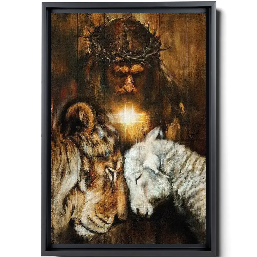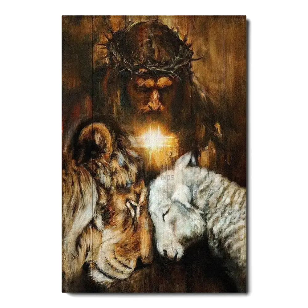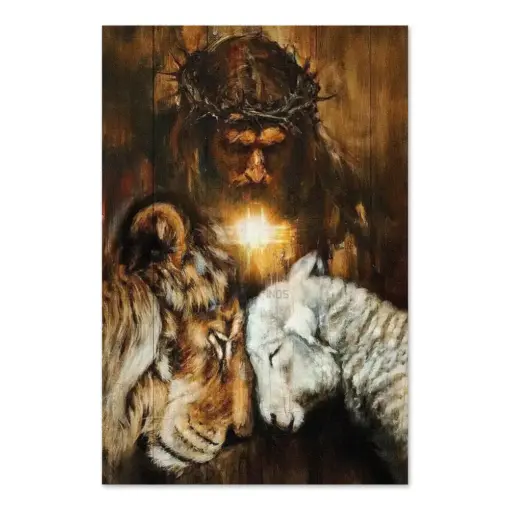 Jesus Painting Lion And Lamb Cross Symbol Beautiful Night God Canvas Jesus Canvas – Christian Wall Art 233