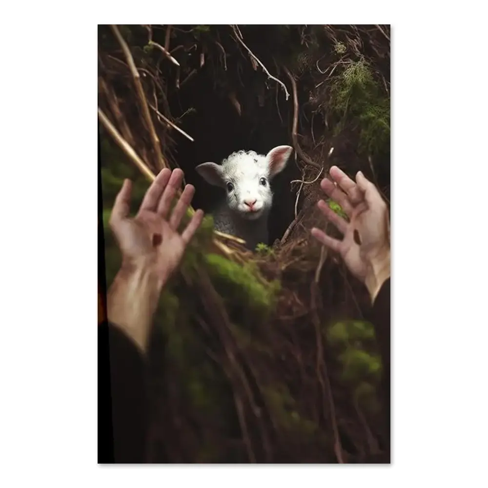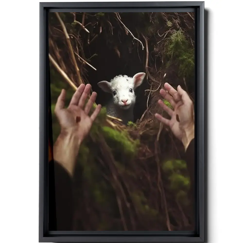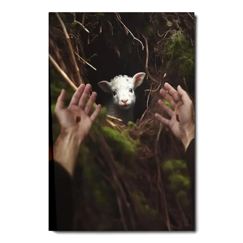 Jesus Rescues A Muddy Lamb Canvas Print Religious Christian Home Decor Jesus Run For The Lost Sheep In Spring And Summer Forest Wall Art