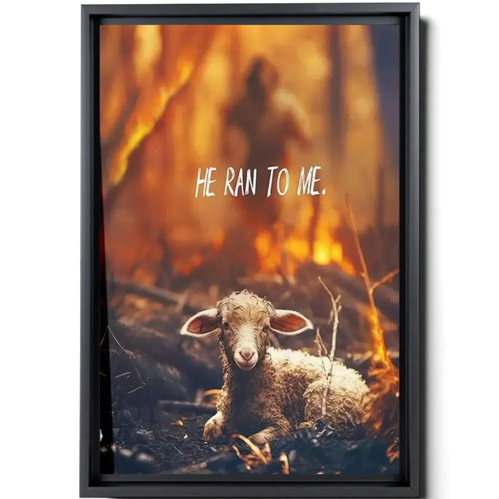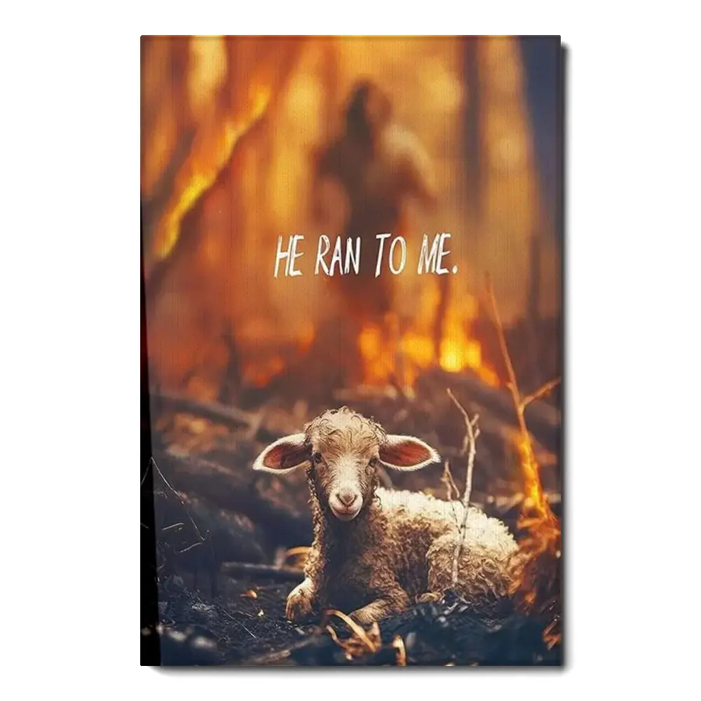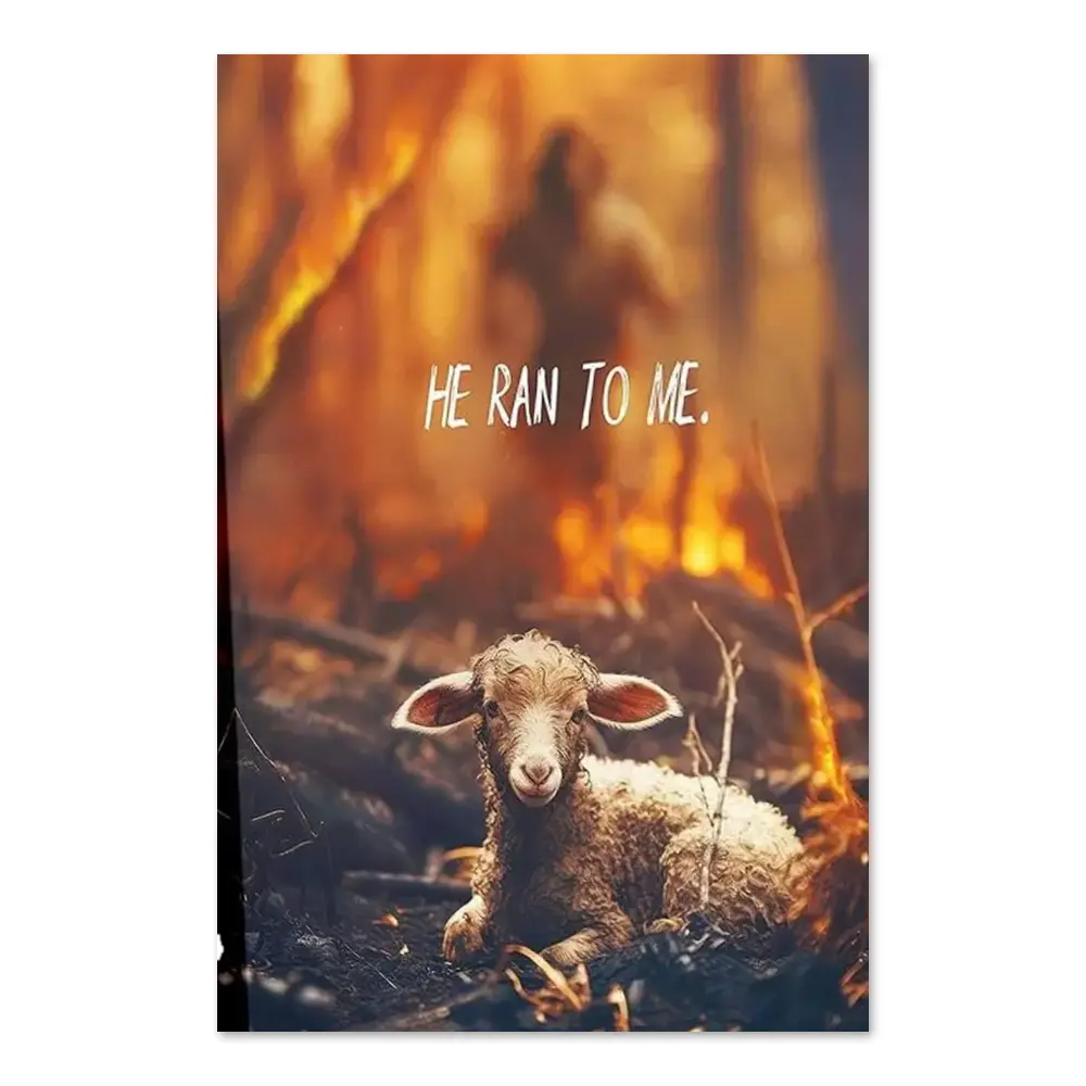 Jesus Rescues Lamb In The Fire Canvas Wall Art Jesus Running Towards Wolf And Lamb Canvas Print Lost Lamb In Autumn Forest Christian Decor