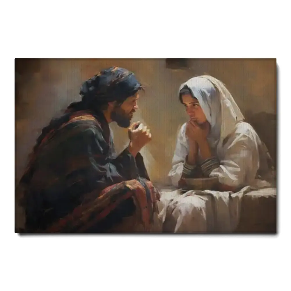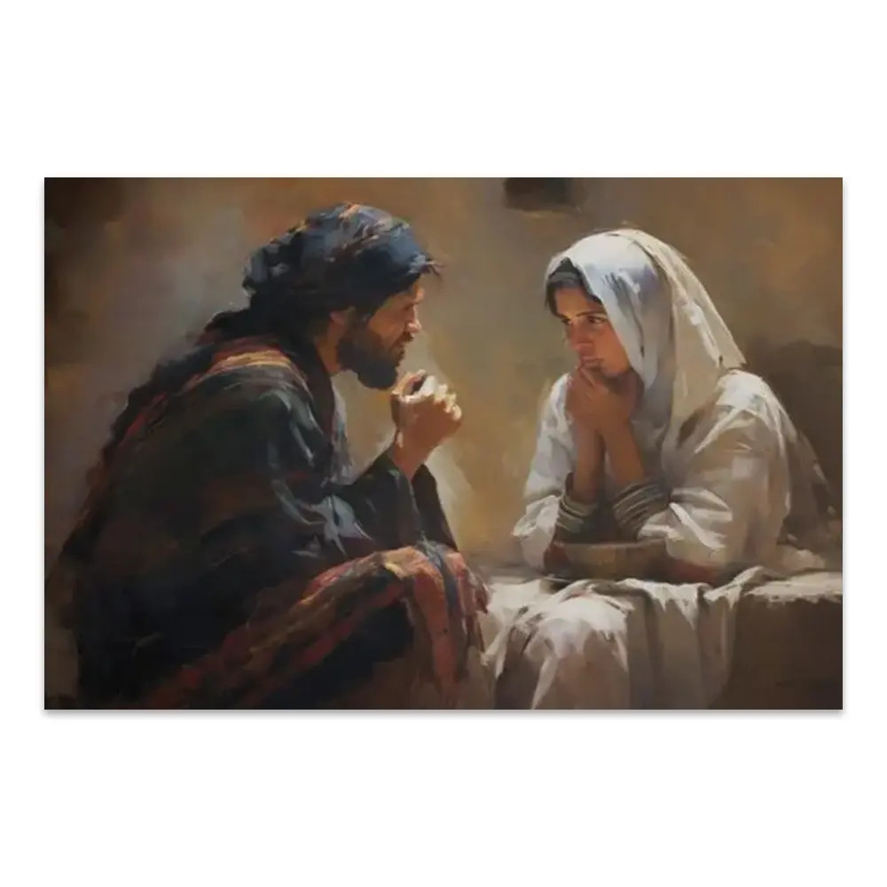 Jesus Talks To Woman Poster Or Canvas – Christian Wall Art Bible Verse Wall Art Bible Sketches Bible Poster Scripture Art Jesus Art