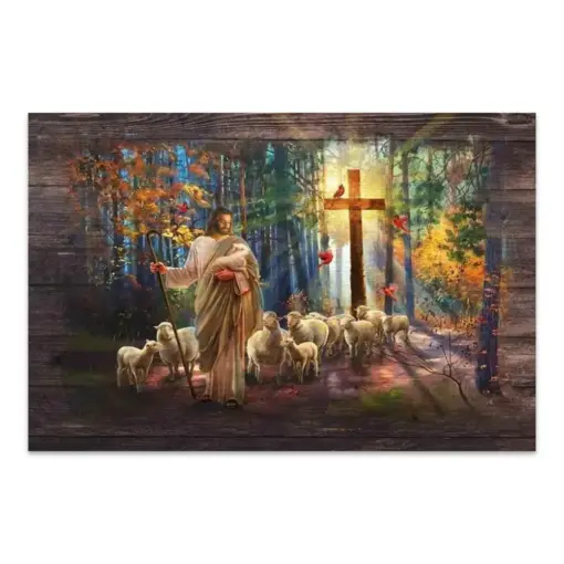 Jesus Walking In Forest With Lamb Canvas Walking With Jesus Canvas God Poster Jesus Wall Art Jesus Painting Poster Jesus Lover Gift