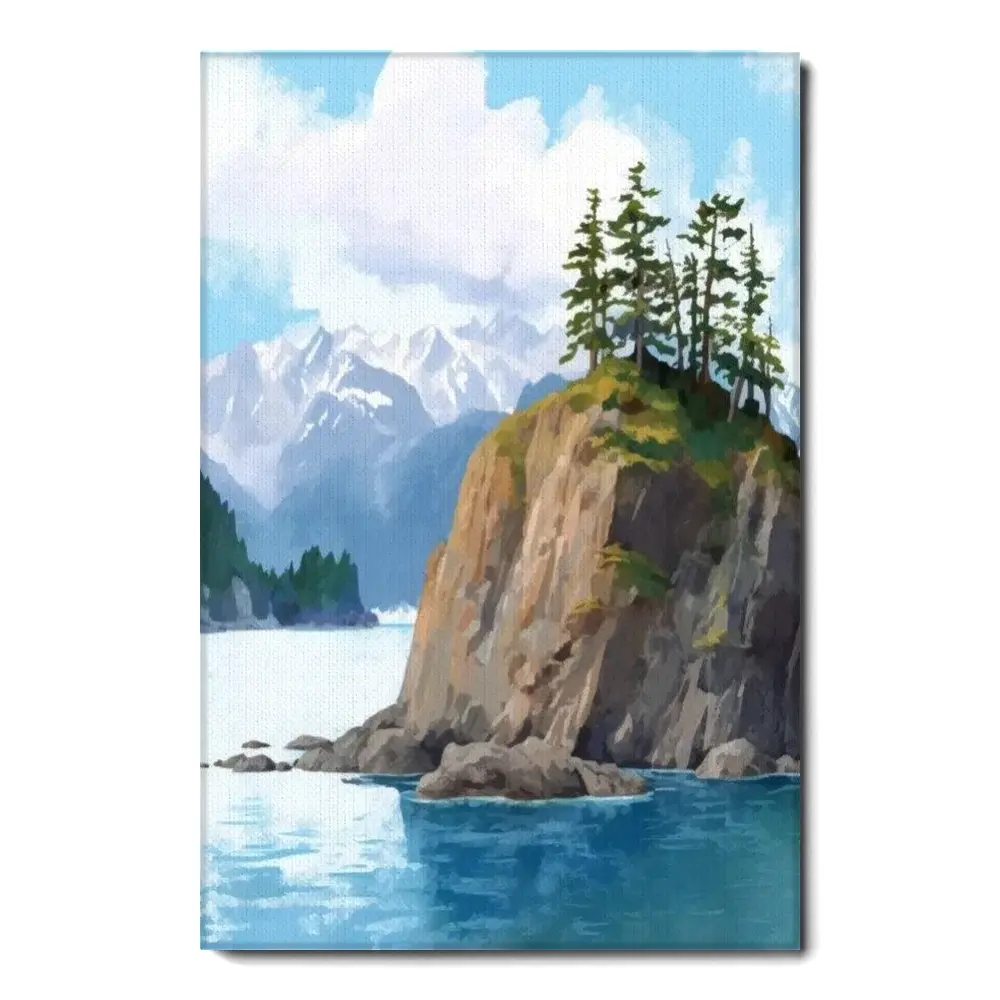 Kensi Fjords Watercolor Print | Alaska Travel Gift | Alaskan Wilderness Wall Art | Alpine Landscape | Glacial Beauty | Coastal Treks | Decor