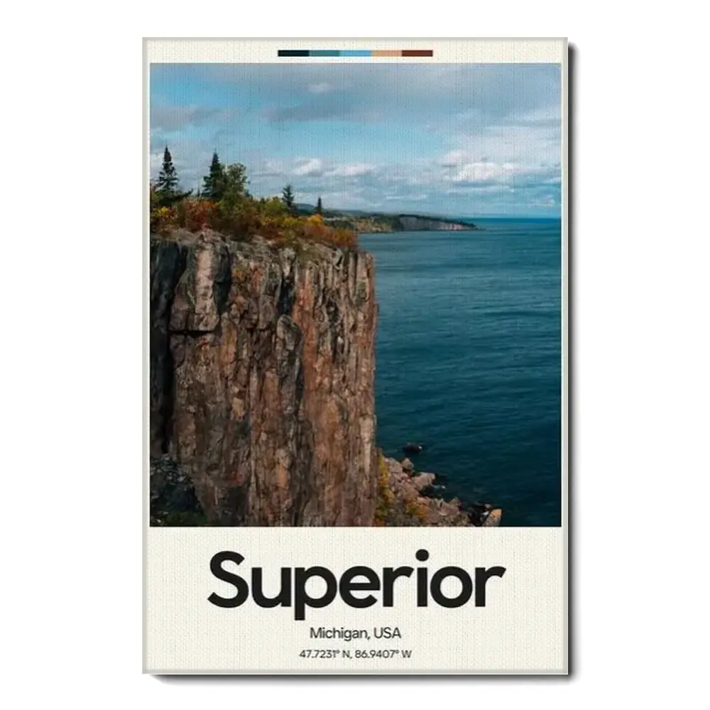 Lake Superior Poster – Oil Painting Technique | Lakes Wall Art | & Printed Travel Prints | Animalistic Home Decor