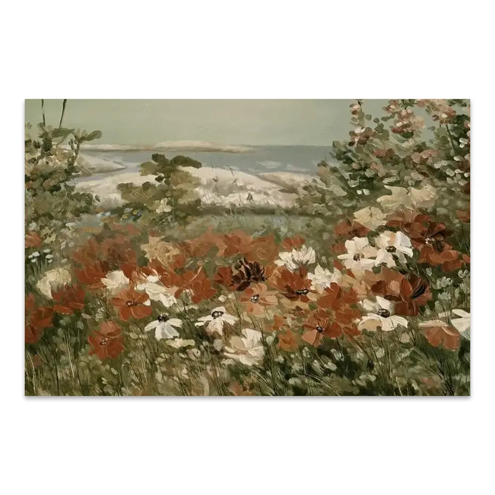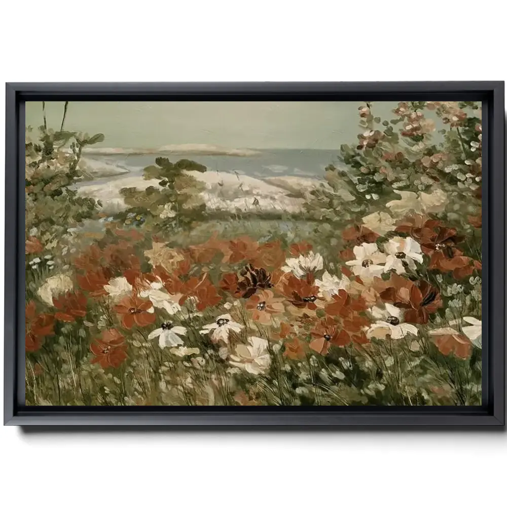 Landscape Wall Art Wildflower Field Oil Painting Frame Large Wall Art Landscape Art Green Art Vintage Decor