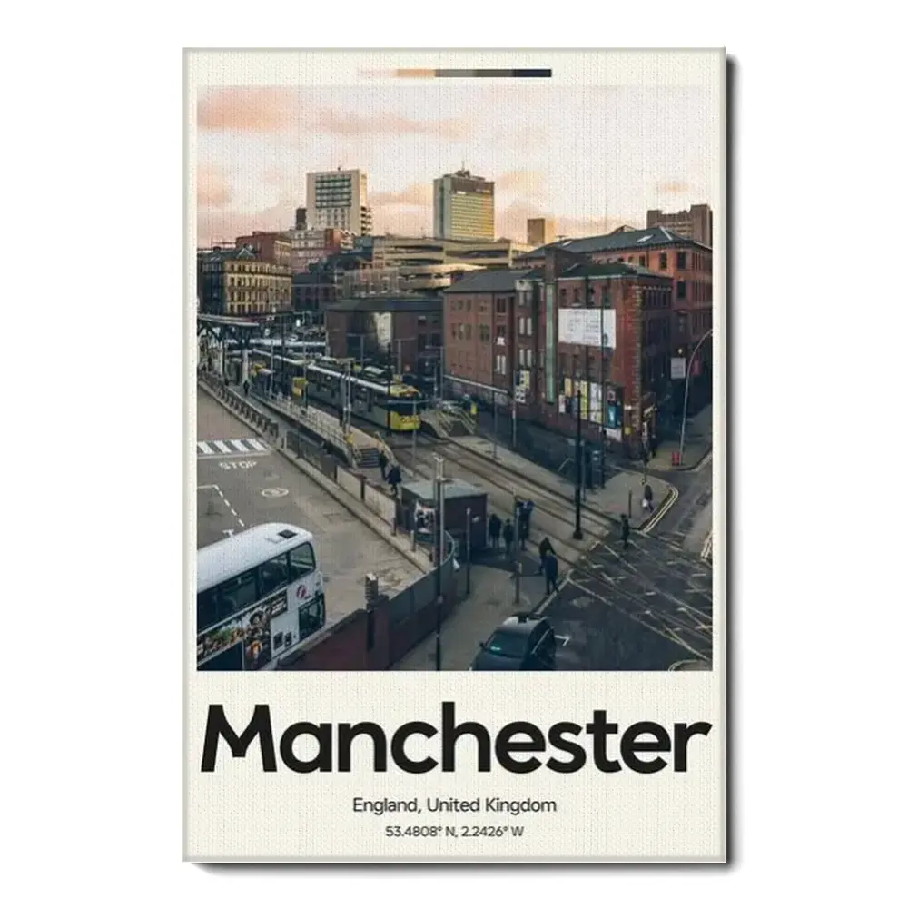 Manchester Poster – Oil Painting Technique | United Kingdom Wall Art | & Printed Travel Prints | Animalistic Home Decor