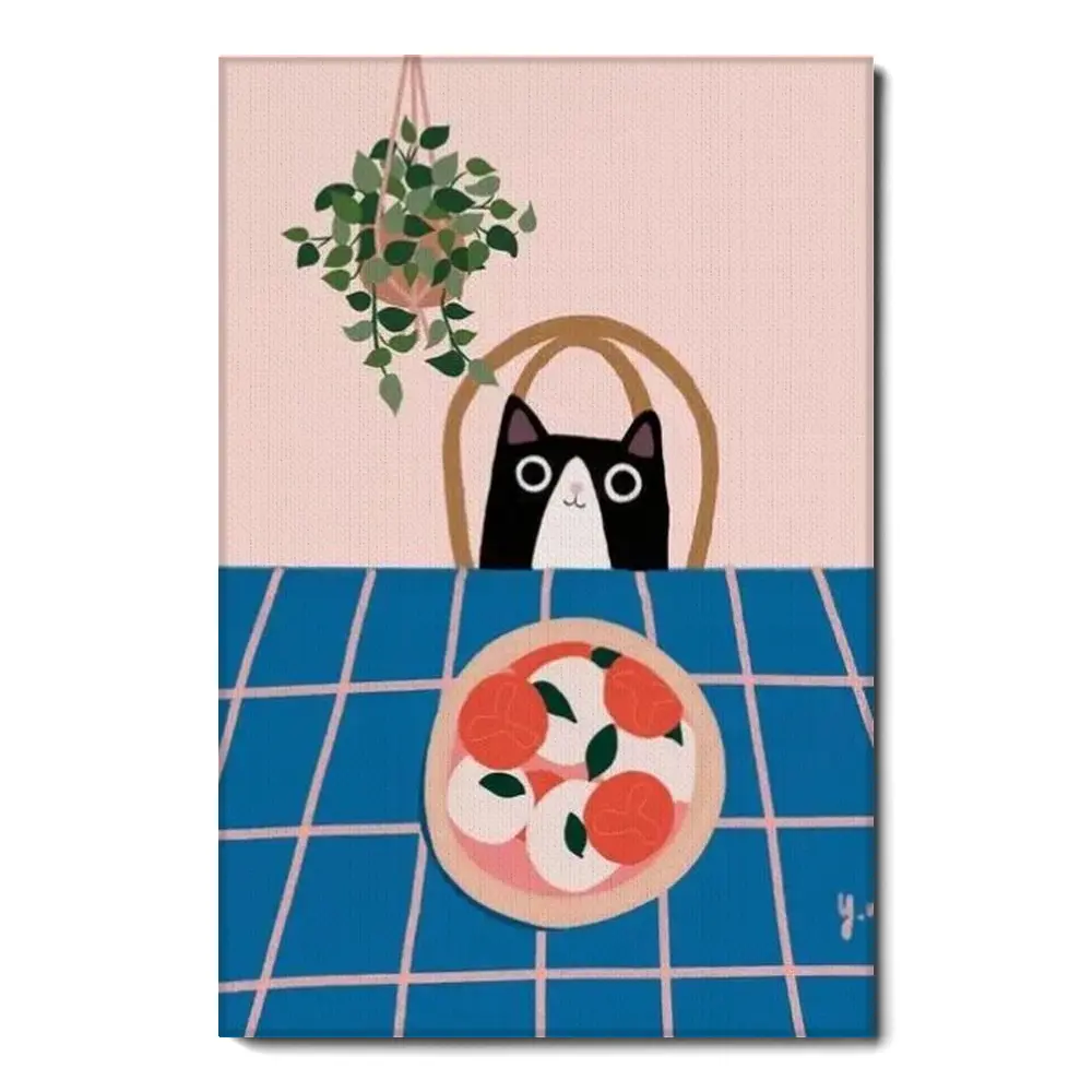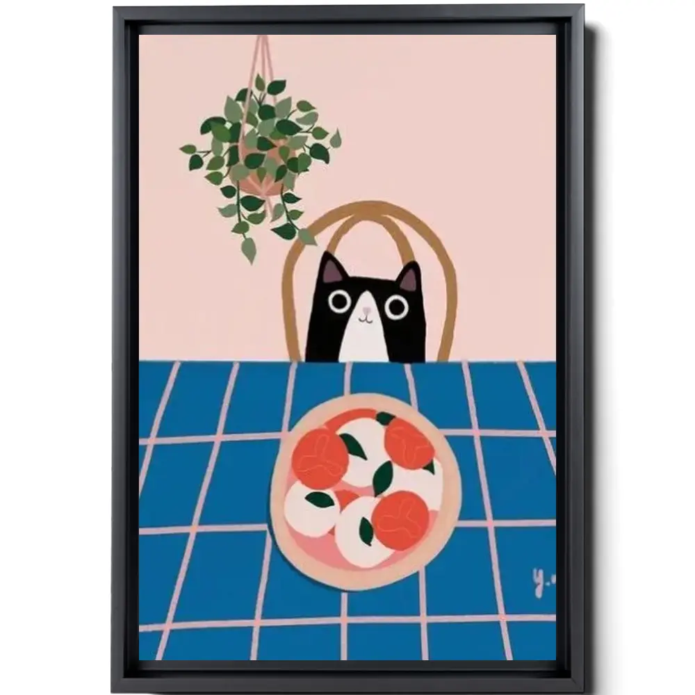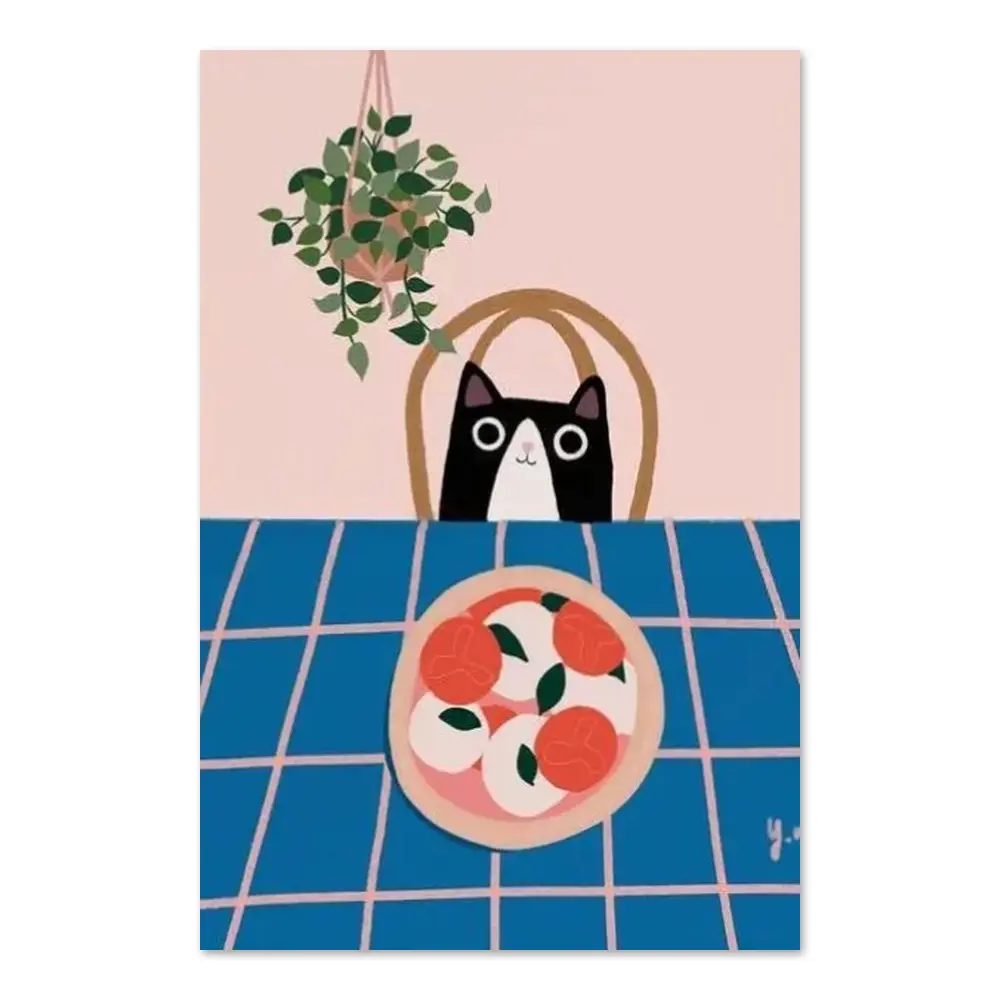 Margherita Pizza Cat Drinkable Wall Art Whimsical Pizza Cute Funny Tuxedo Cat Poster Kitchen Decor Bakery Pizza Store Wall Artwork
