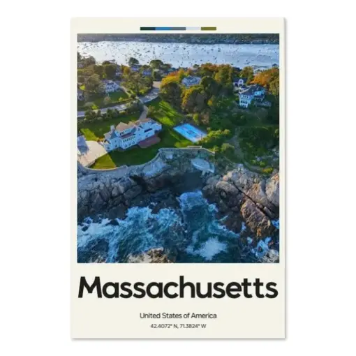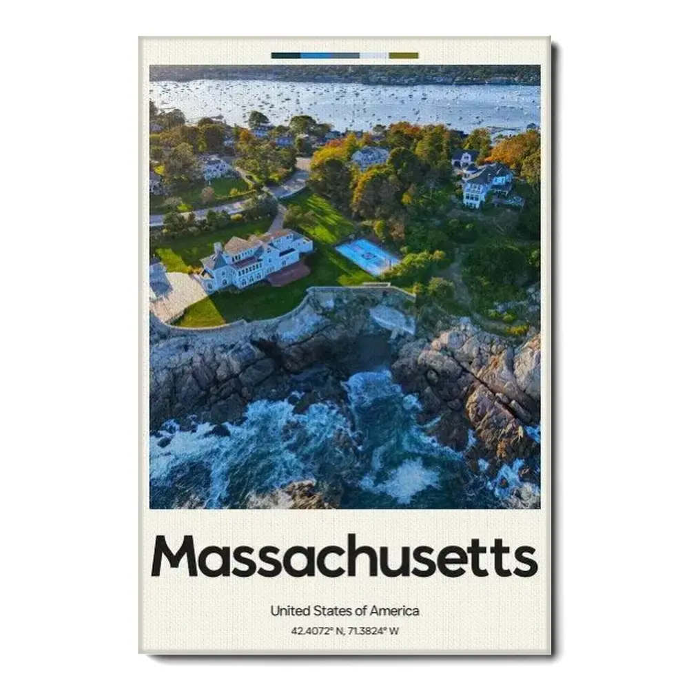 Massachusetts Poster – Oil Painting Technique | United States Wall Art | & Printed Travel Prints | Animalistic Home Decor