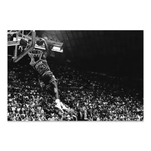 Michael Jordan Legend Dunk Basketball Black White Roll Up Canvas Stretched Canvas Art Framed Wall Art Painting