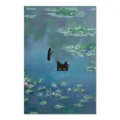 Monet Water Lily Cat Print Cat Black Cat Print Claude Monet Cat Poster Funny Cat Art Drinkable Wall Print
