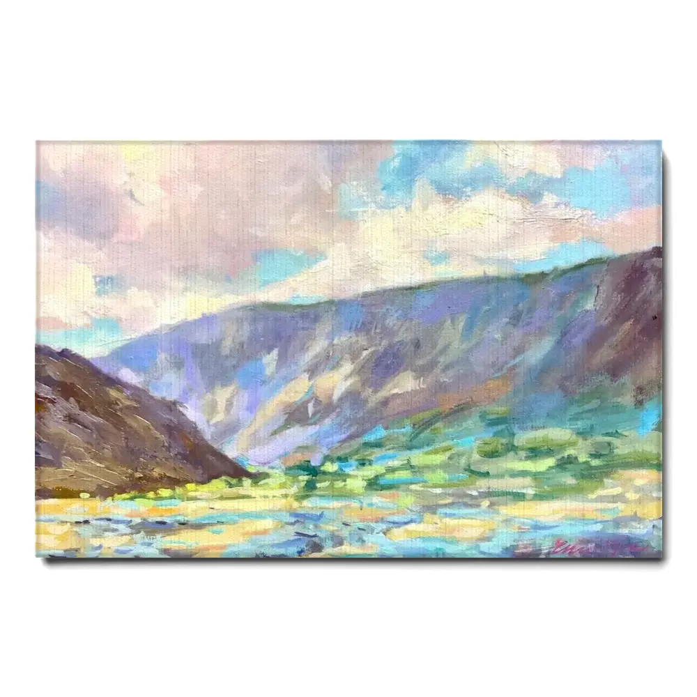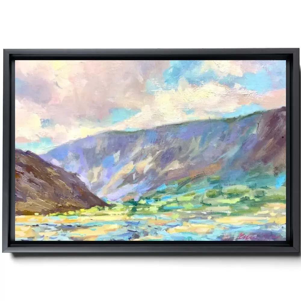 This is a more casual and often more artistic style of canvas presentation. A hanging canvas typically consists of a canvas fabric sheet with two wooden bars attached at the top and bottom. The top bar includes a hanging mechanism, usually a string or a cord, for easy display. This style allows the canvas to hang freely against the wall, giving it a slightly informal, bohemian feel. The canvas in this case can be easily rolled for storage or transport.
