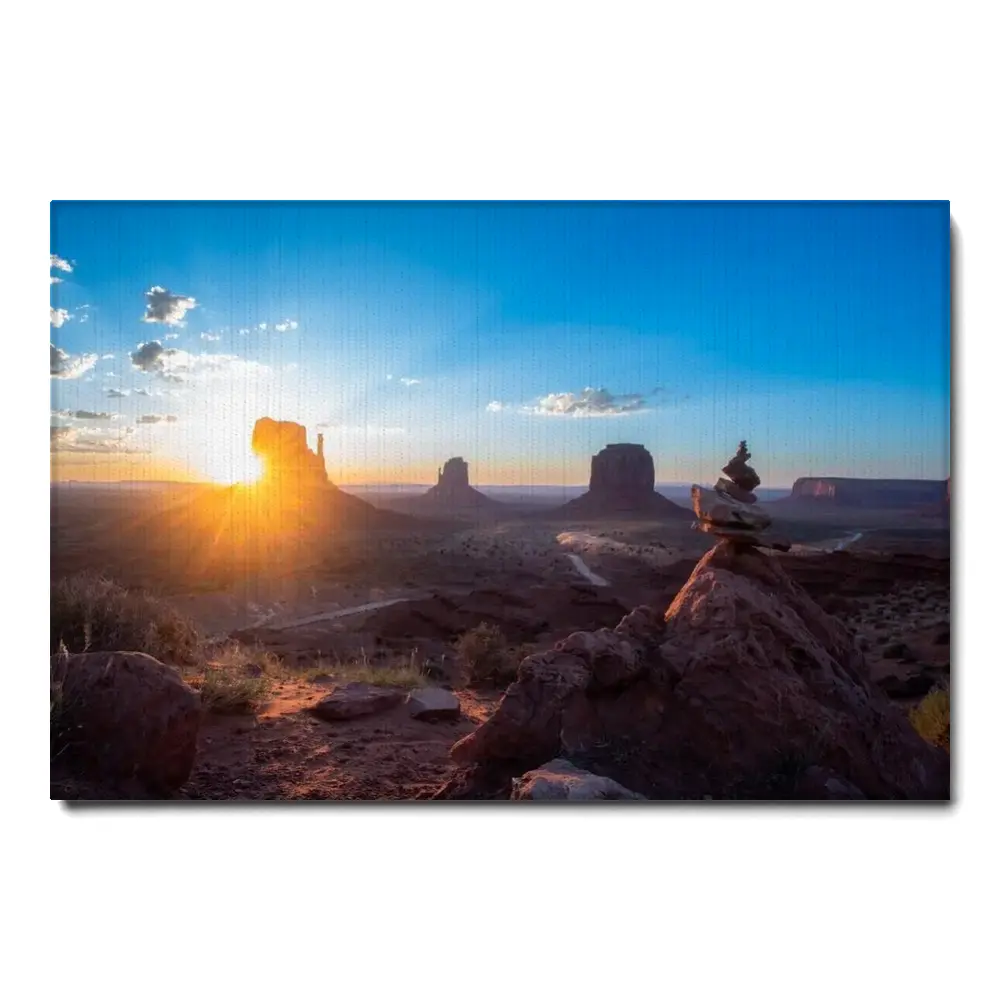 This is a more casual and often more artistic style of canvas presentation. A hanging canvas typically consists of a canvas fabric sheet with two wooden bars attached at the top and bottom. The top bar includes a hanging mechanism, usually a string or a cord, for easy display. This style allows the canvas to hang freely against the wall, giving it a slightly informal, bohemian feel. The canvas in this case can be easily rolled for storage or transport.