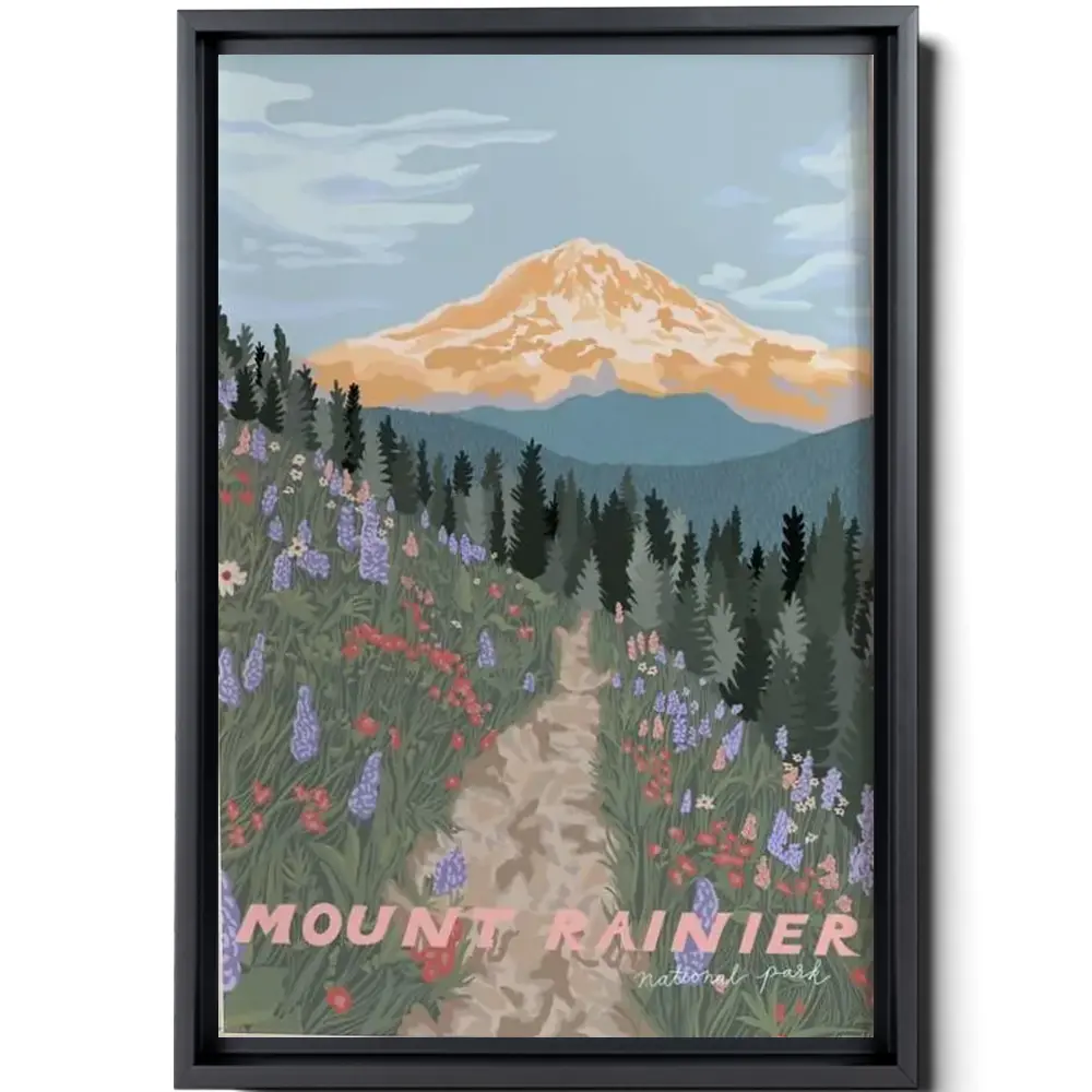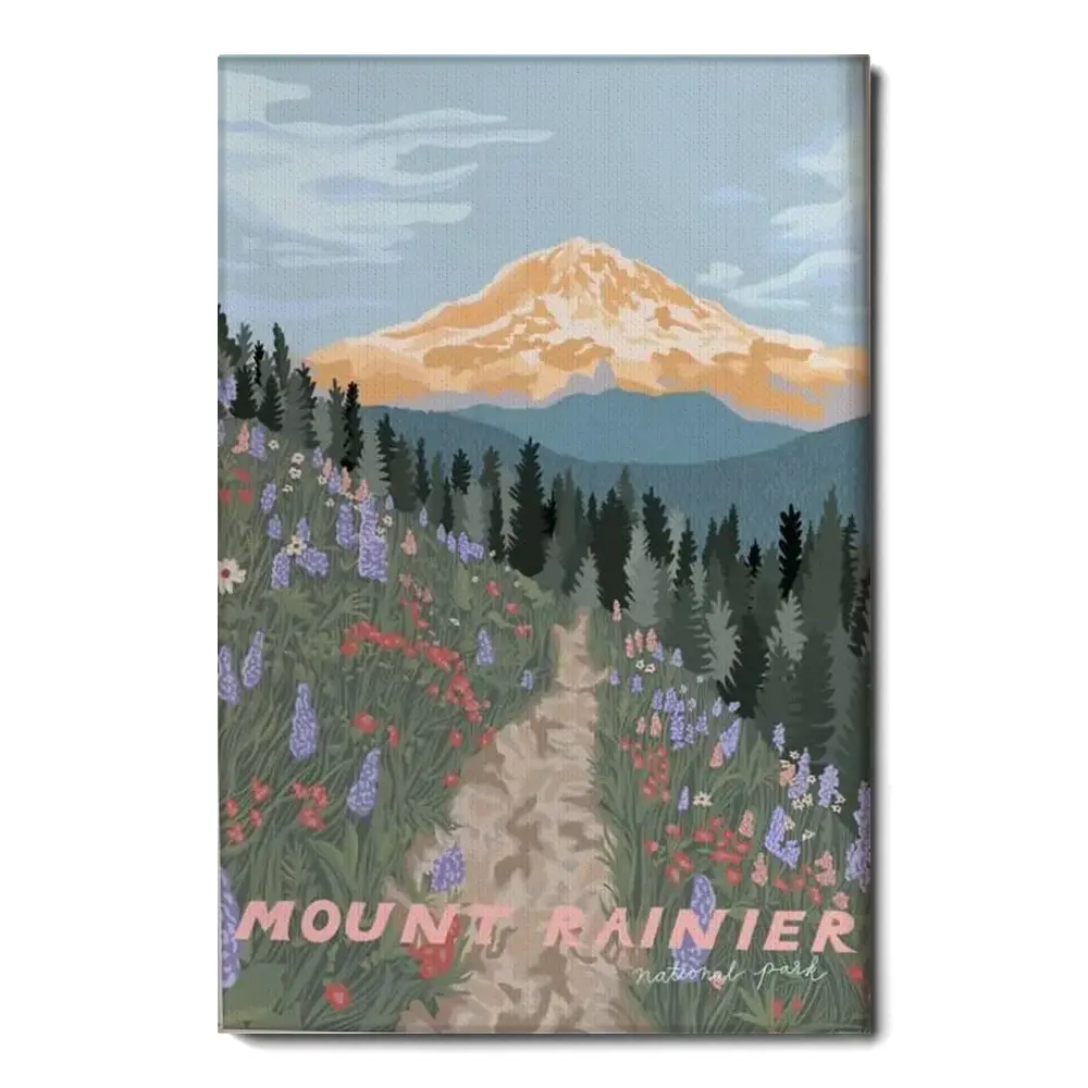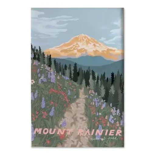 Mount Rainier National Park Washington / Illustrated National Parks Poster / Washington State Pacific Northwest Art Print United States