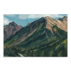 Mountain Landscape Watercolor Neutral Wall Art Panoramic Landscape Minimalist Wall Art Mountains Painting Green Nature Art Print