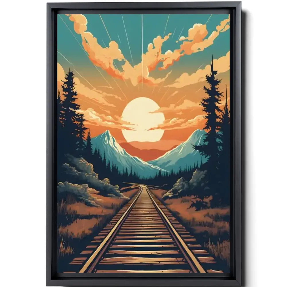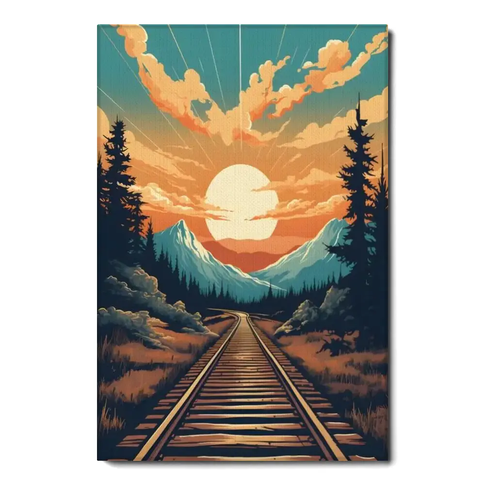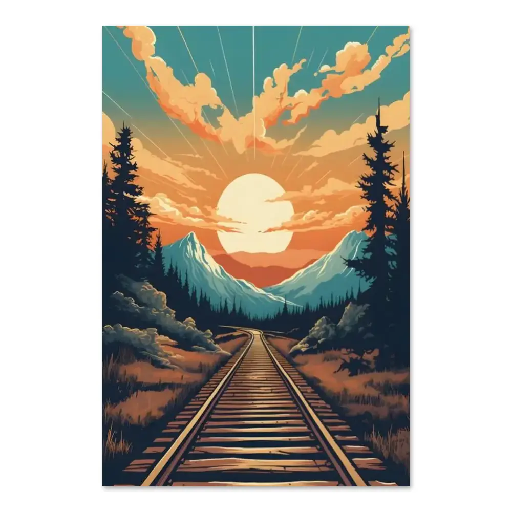 Mountain Sunset And Train Track View Matte Vertical Posters