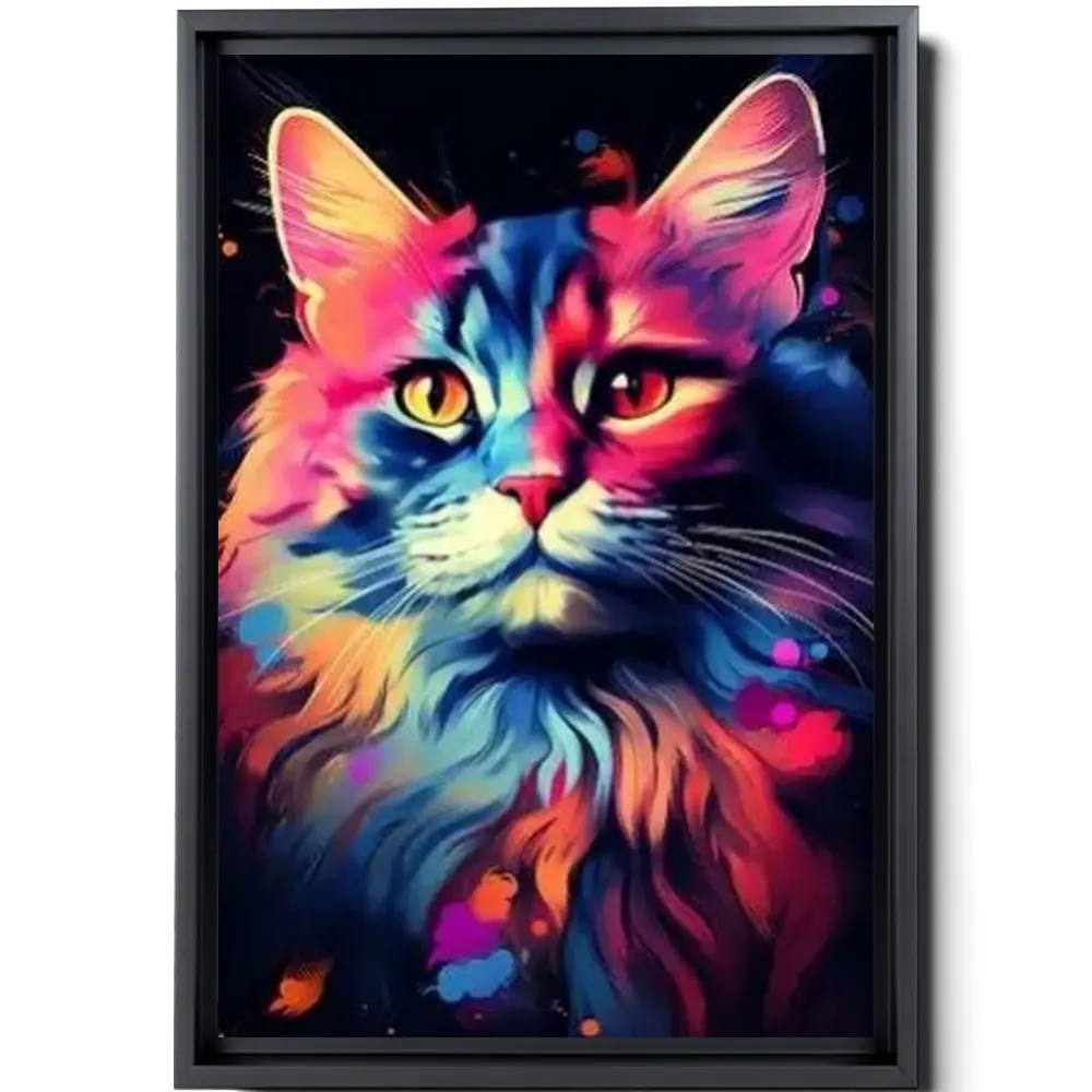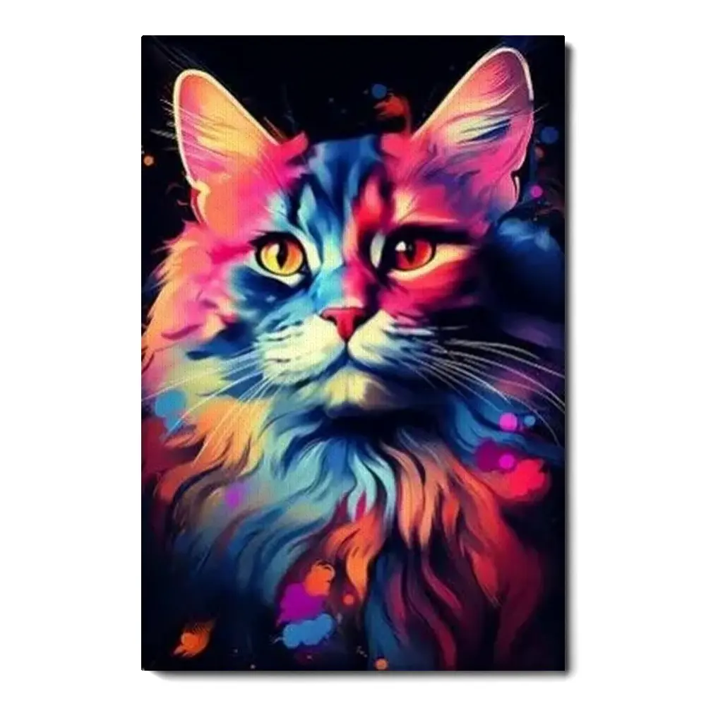 Multicolored Cat Large Cat Canvas Wall Art Colorful Art Birthday Gift , Bedroom Living Room Decor Cat Lover Home Decorations Rainbow