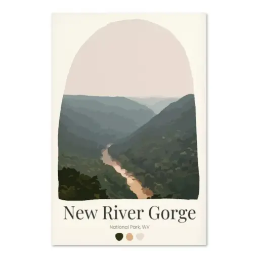 New River Gorge National Park – Aesthetic Travel Poster Home Decor Nature Gift Cute Wilderness Art Cozy Minimalist Print Pastel