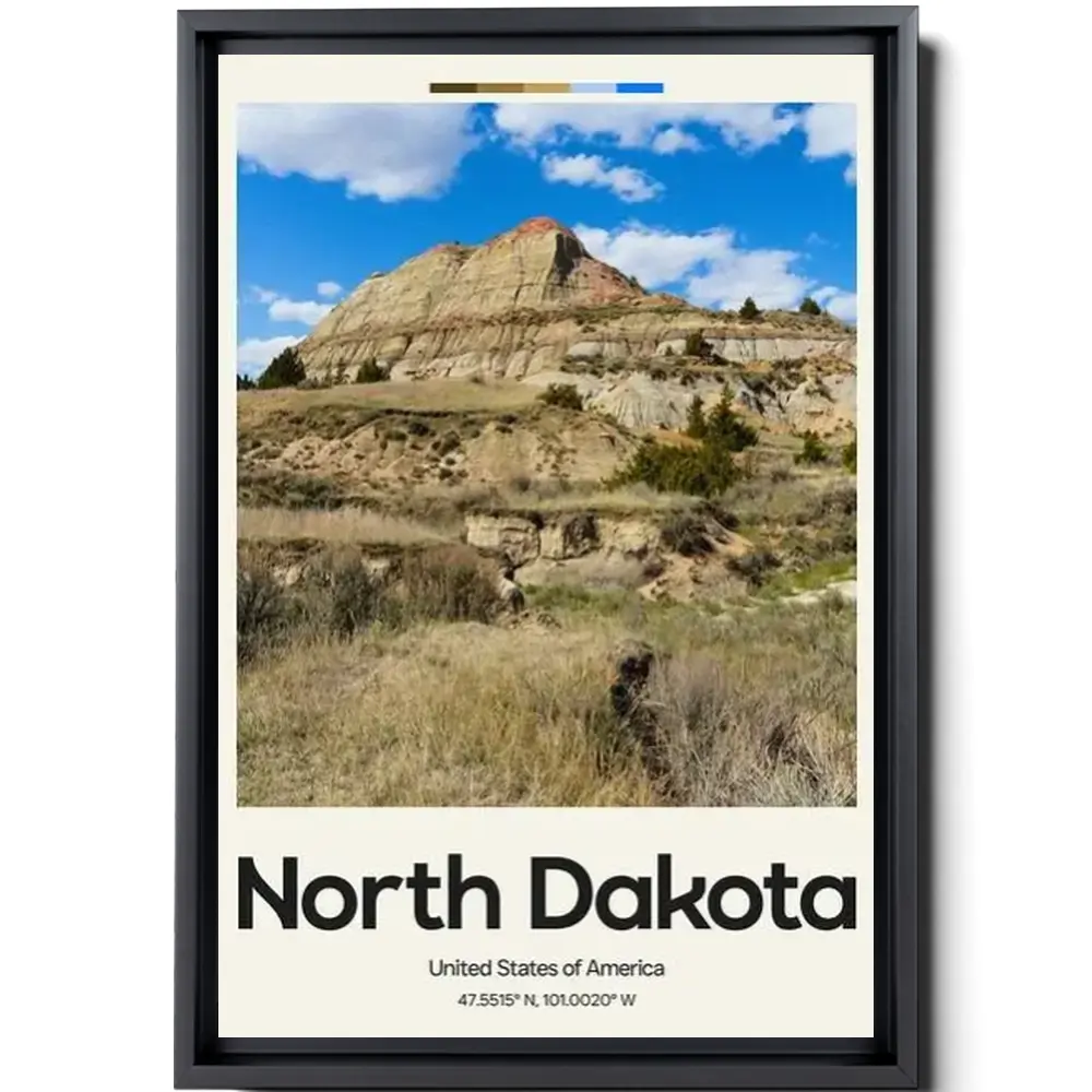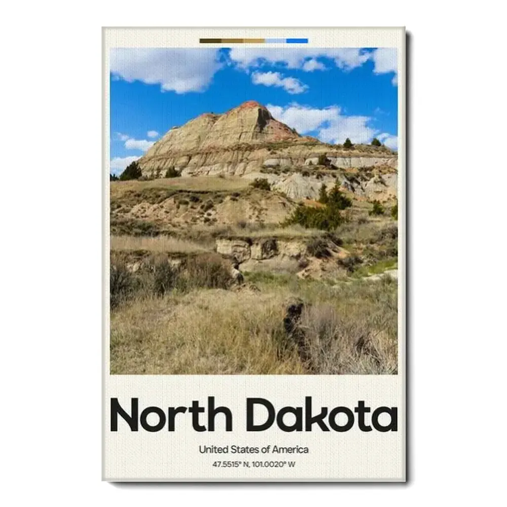 North Dakota Poster – Oil Painting Technique | United States Wall Art | & Printed Travel Prints | Animalistic Home Decor