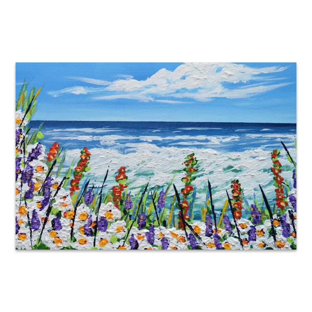 Ocean Painting Tropical Flower Beach Beach House Wall Decor Hand Painted