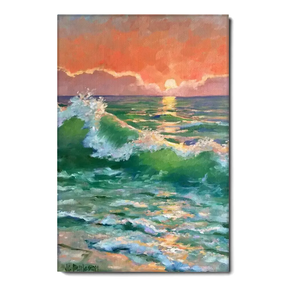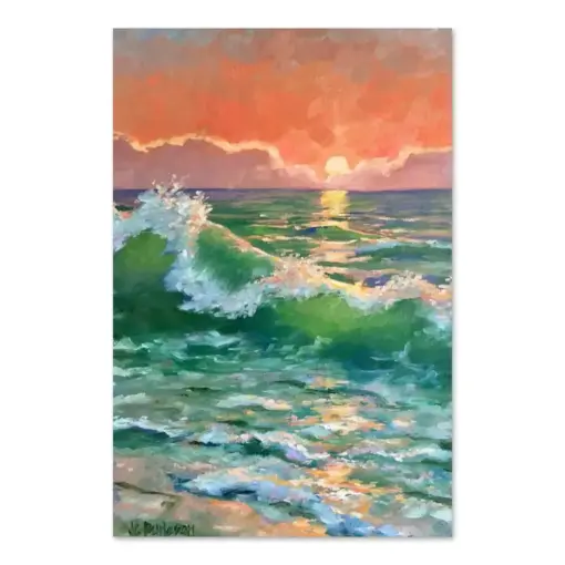 Original Beach Sunset Painting Beach Shoreline With Waves At Sunset Landscape Art