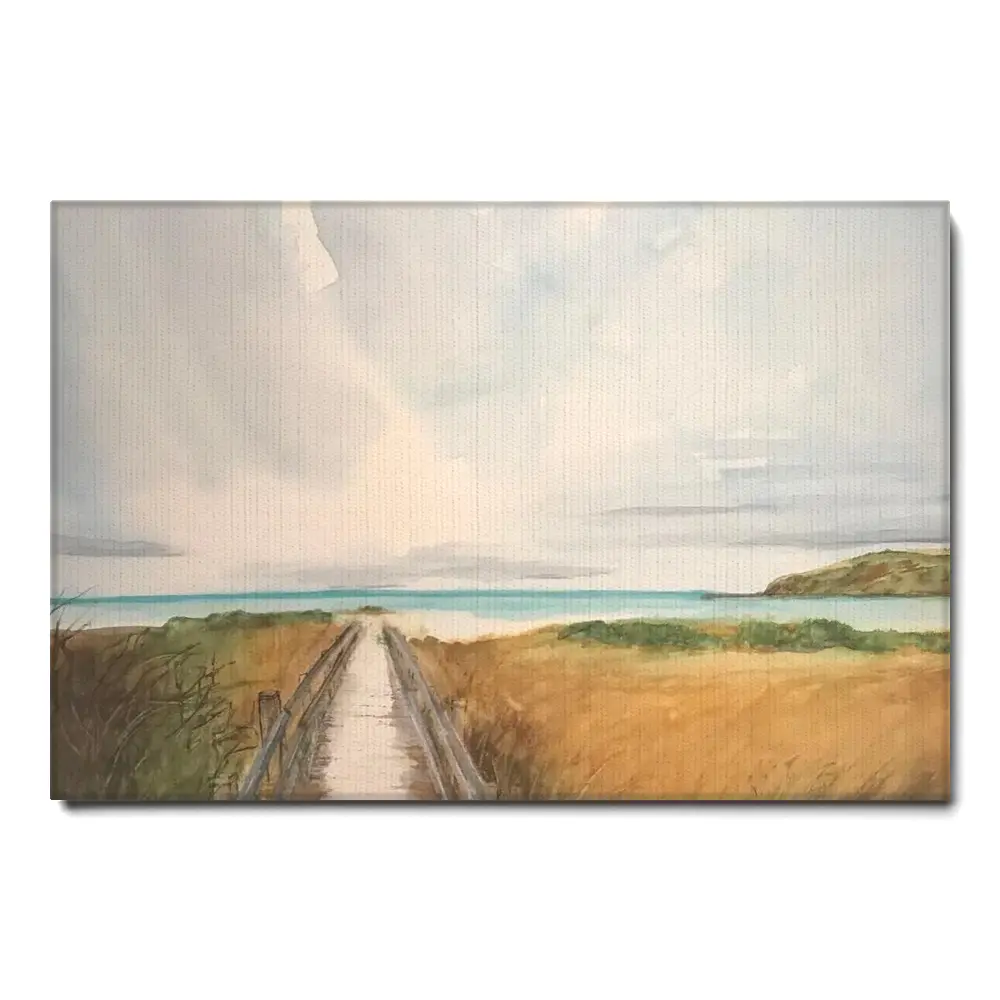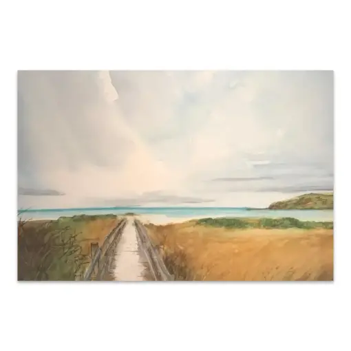This is a more casual and often more artistic style of canvas presentation. A hanging canvas typically consists of a canvas fabric sheet with two wooden bars attached at the top and bottom. The top bar includes a hanging mechanism, usually a string or a cord, for easy display. This style allows the canvas to hang freely against the wall, giving it a slightly informal, bohemian feel. The canvas in this case can be easily rolled for storage or transport.