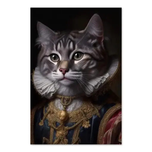 Portrait Of A Noble Gray Cat Baroque Style Wall Decoration Animals Feline Wall Poster Poster To Frame