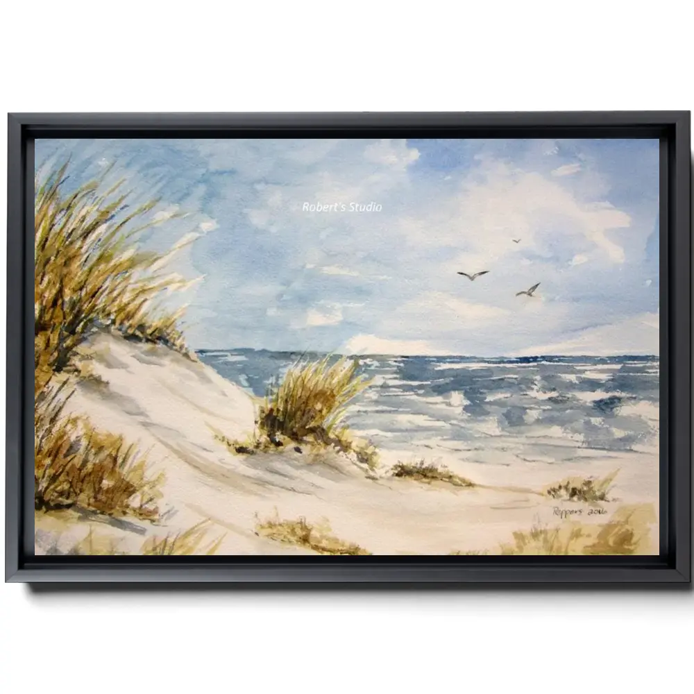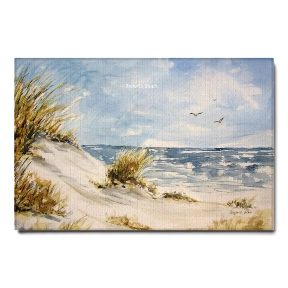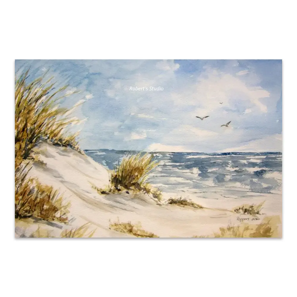 Print Of Original Watercolor Landscape Painting Watercolor Art Seascape Painting Beach Shore Sand Dunes Summer Painting