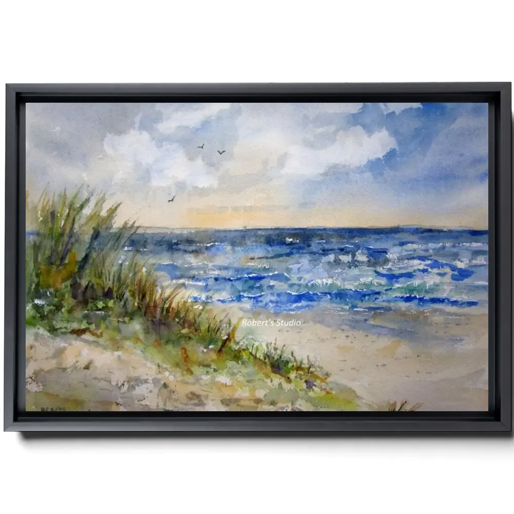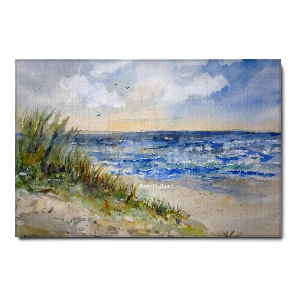 Print Of Watercolor Landscape Painting Watercolor Art Seascape Painting Beach Shore Ocean Waves Sand Dunes Summer Painting