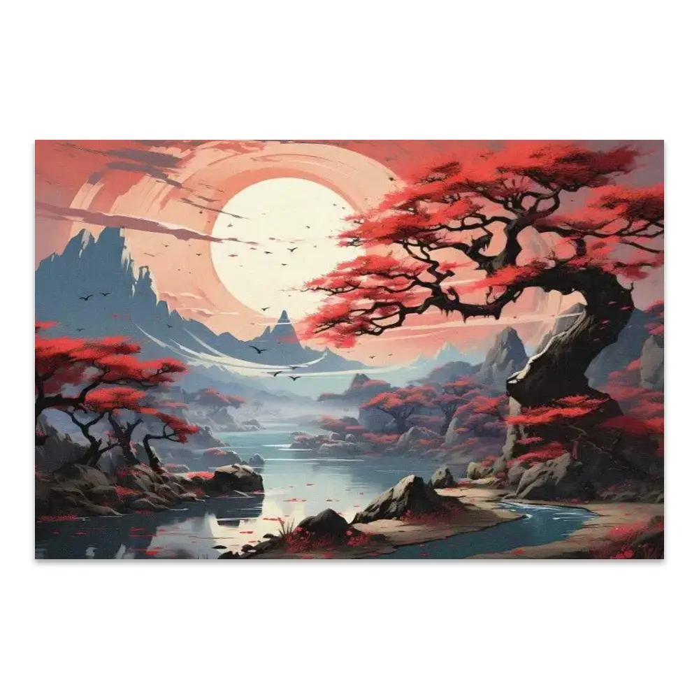 This is a more casual and often more artistic style of canvas presentation. A hanging canvas typically consists of a canvas fabric sheet with two wooden bars attached at the top and bottom. The top bar includes a hanging mechanism, usually a string or a cord, for easy display. This style allows the canvas to hang freely against the wall, giving it a slightly informal, bohemian feel. The canvas in this case can be easily rolled for storage or transport.