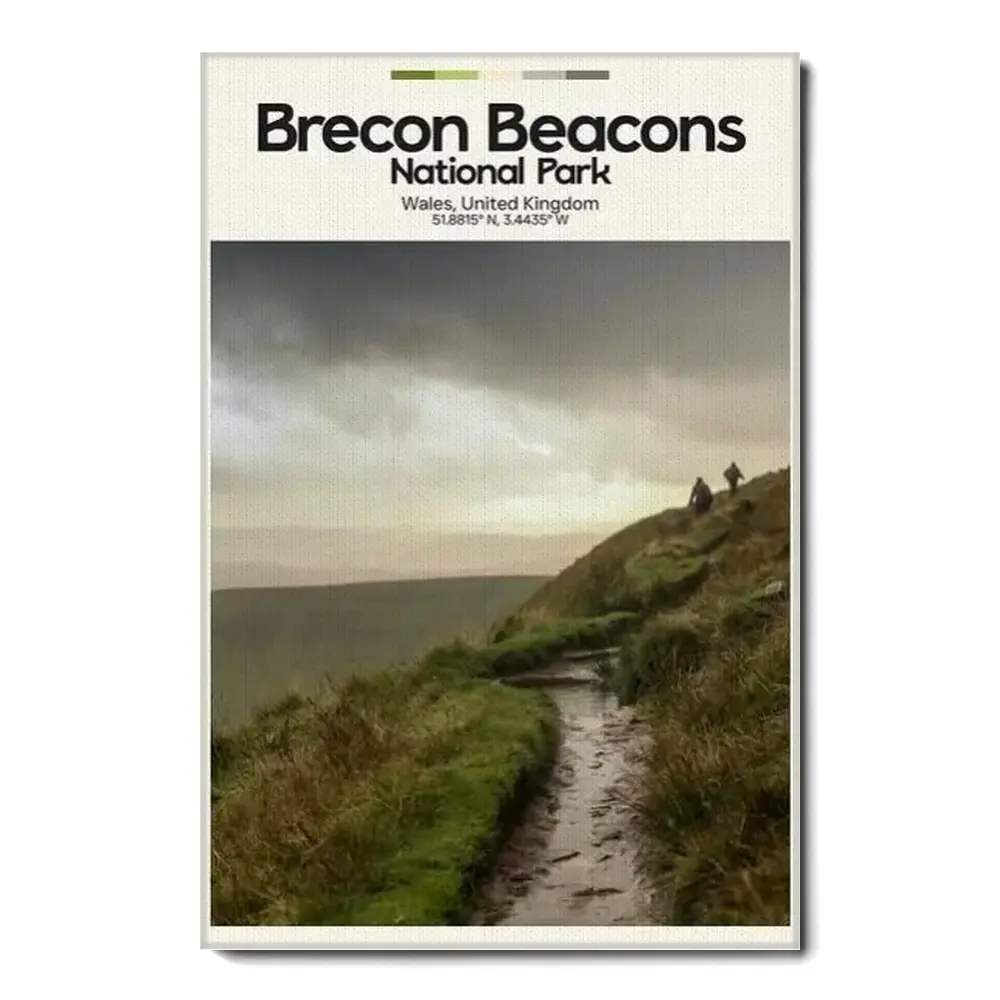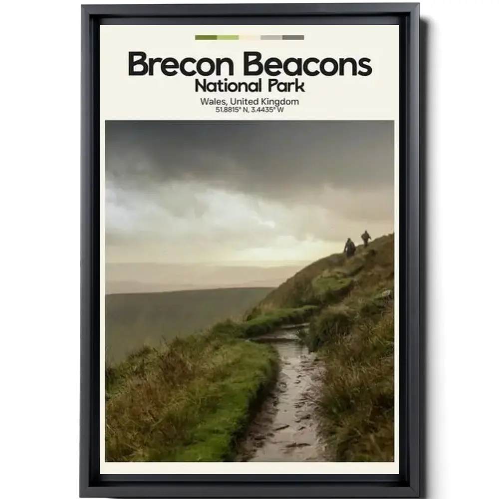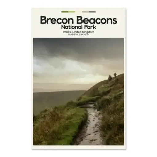 Recon Beacons Poster – Oil Painting Technique | Uk National Park Wall Art | & Printed Travel Prints | Animalistic Home Decor