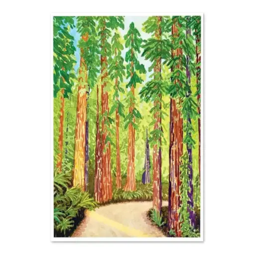 Redwood Forest Watercolor Painting California National Park Art Print Impressionist Outdoor Artwork