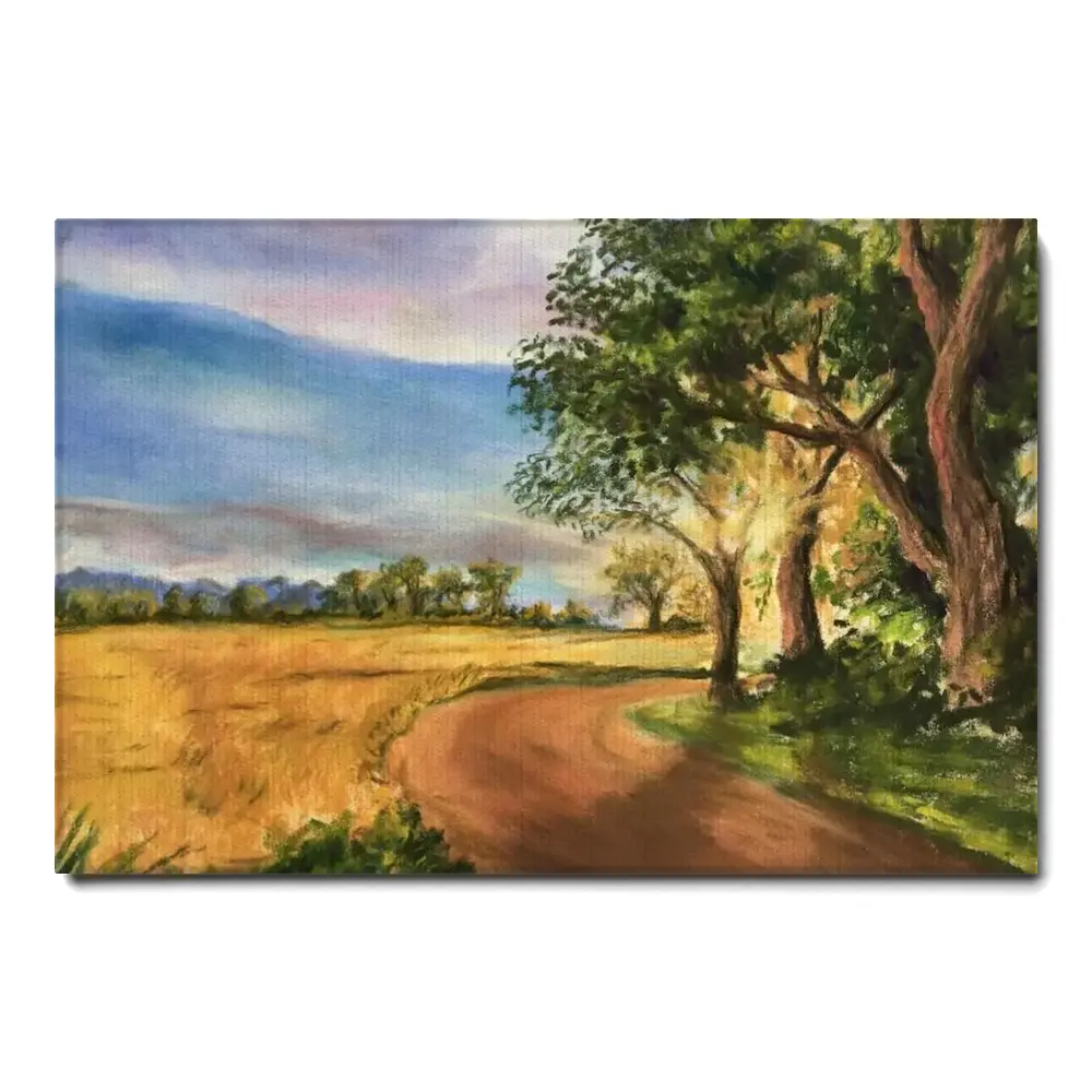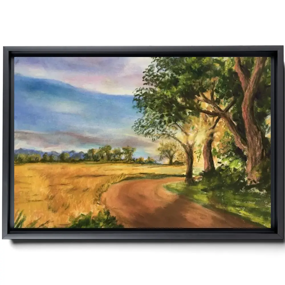 This is a more casual and often more artistic style of canvas presentation. A hanging canvas typically consists of a canvas fabric sheet with two wooden bars attached at the top and bottom. The top bar includes a hanging mechanism, usually a string or a cord, for easy display. This style allows the canvas to hang freely against the wall, giving it a slightly informal, bohemian feel. The canvas in this case can be easily rolled for storage or transport.