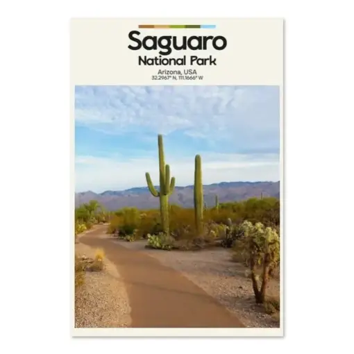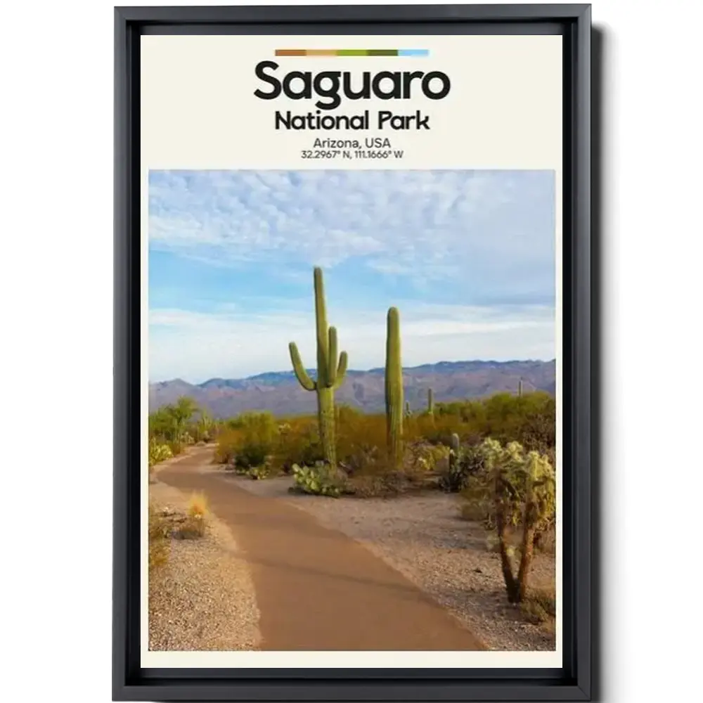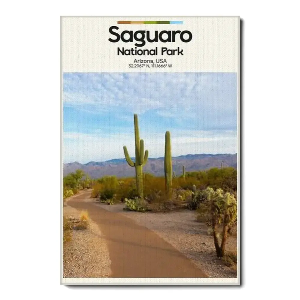 Saguaro Poster – Oil Painting Technique | Usa National Park Wall Art | & Printed Travel Prints | Animalistic Home Decor