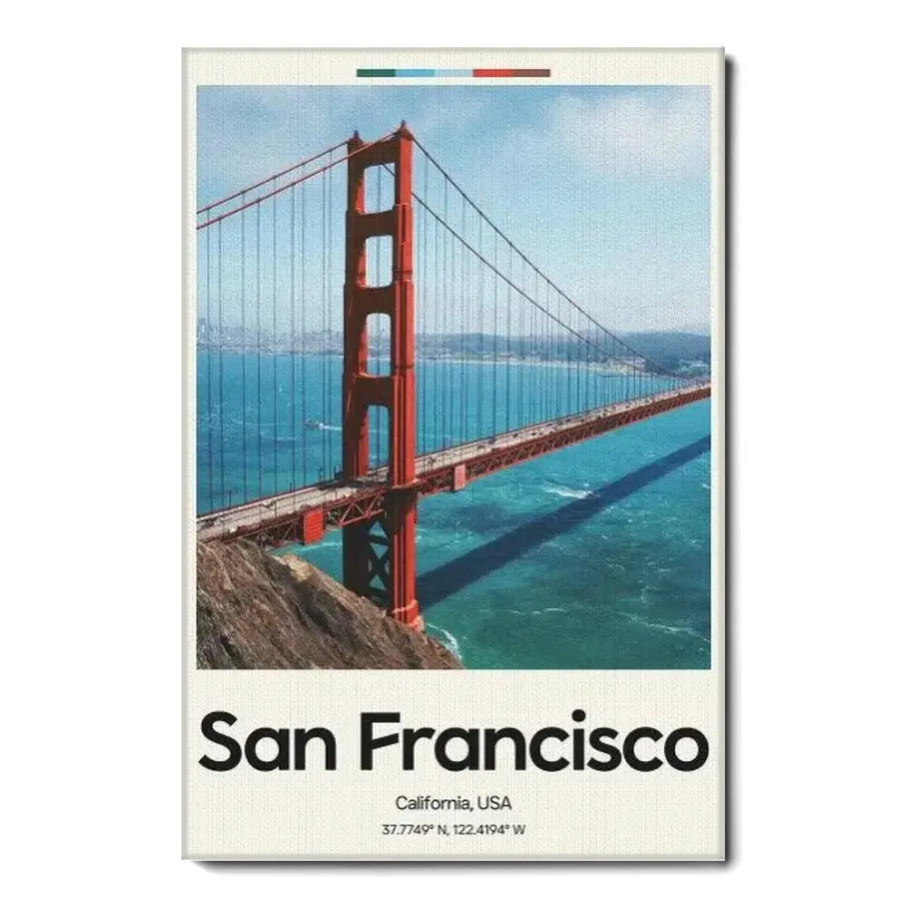 San Francisco Bridge Poster – Oil Painting Technique | United States Wall Art | & Printed Travel Prints | Animalistic Home Decor