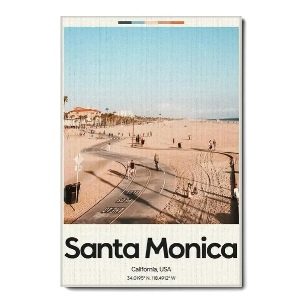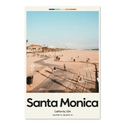 Santa Monica Poster – Oil Painting Technique | Famous Beach Wall Art | & Printed Travel Prints | Animalistic Home Decor