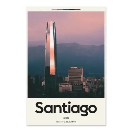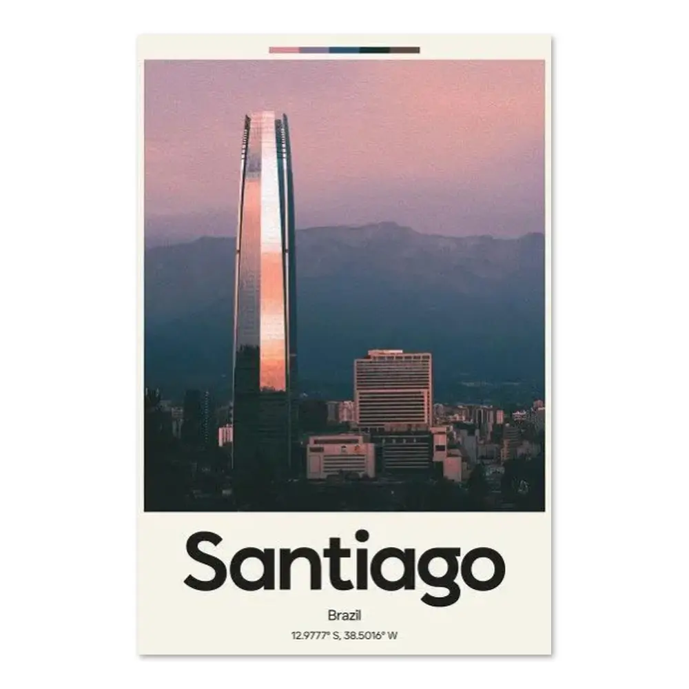 Santiago Poster – Oil Painting Technique | South American Wall Art | & Printed Travel Prints | Animalistic Home Decor