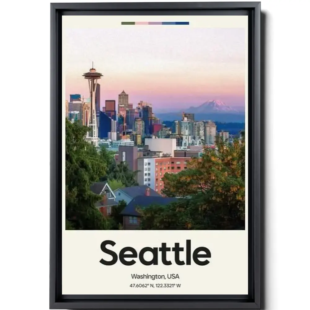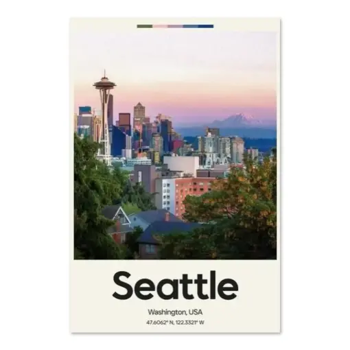 Seattle Poster – Oil Painting Technique | United States Wall Art | & Printed Travel Prints | Animalistic Home Decor