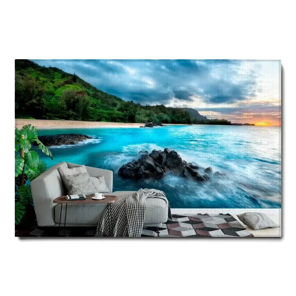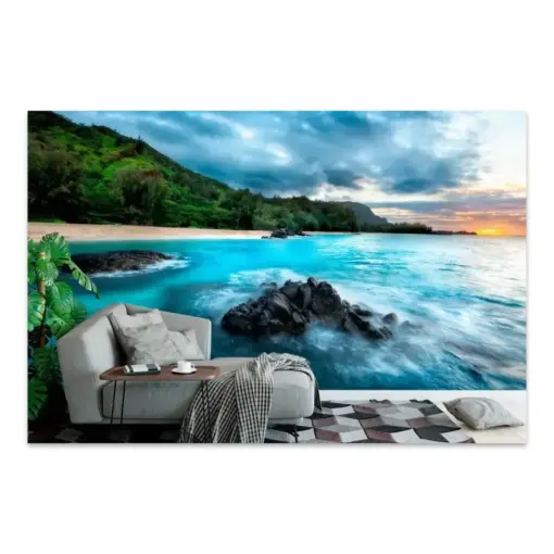 Secret Beach Hawaii Seascape Wallpaper | Wall Decal For Bedroom | Wall Murals For Living Room | Peel And Stick Wallpaper