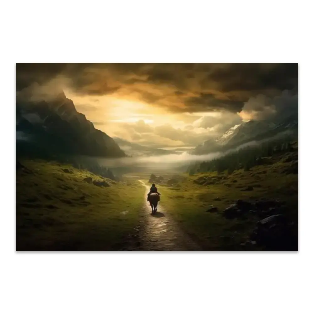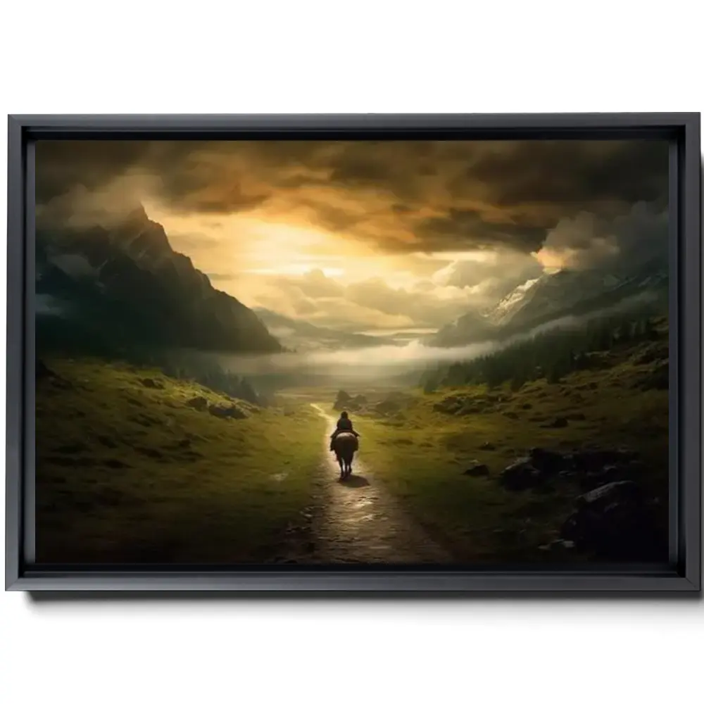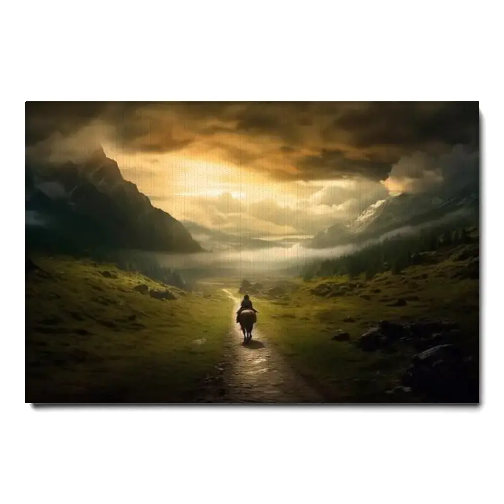 Serene Lone Horseman Canvas Print Equestrian Wall Art Horseback Rider Painting Horseman In Open Field Countryside Art Scenic Landscape